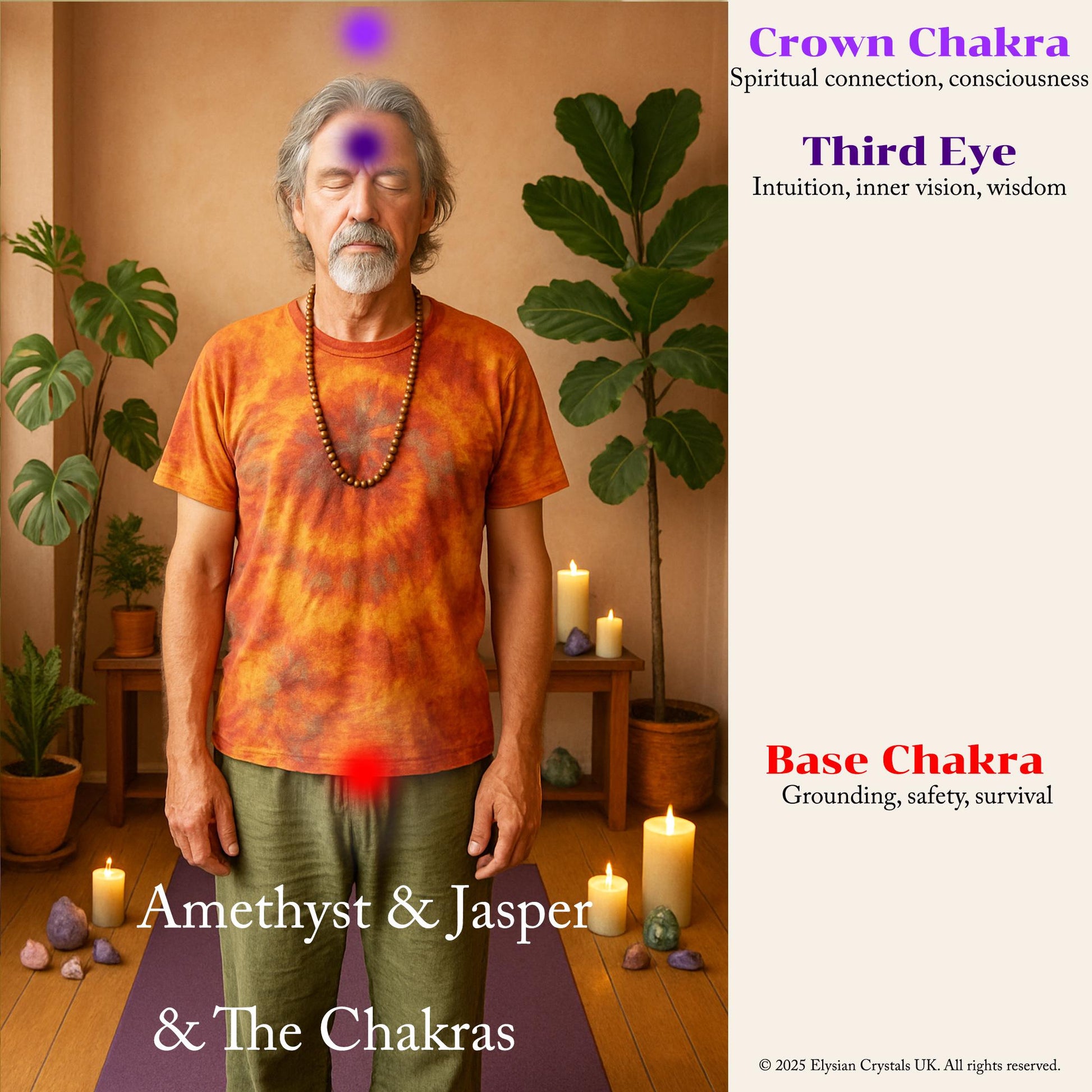 Commonly Assoicated Chakras: Root, Third Eye, Crown