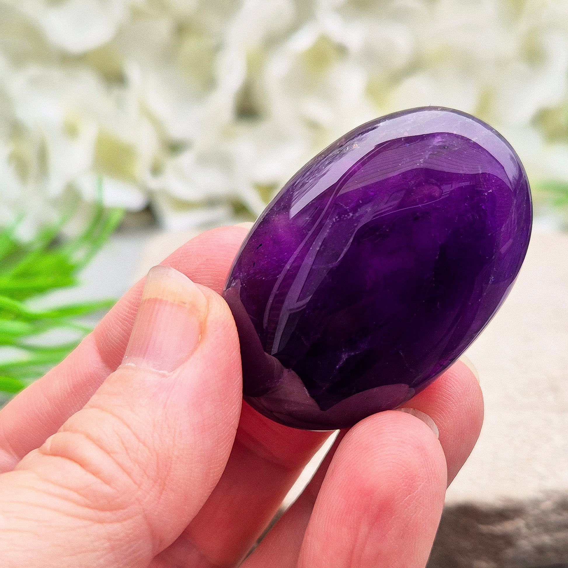This polished Amethyst Crystal Palm Stone has a dark purple colour that’s comforting to hold. It helps you feel grounded, peaceful, and centred, offering support for emotional balance and spiritual connection.