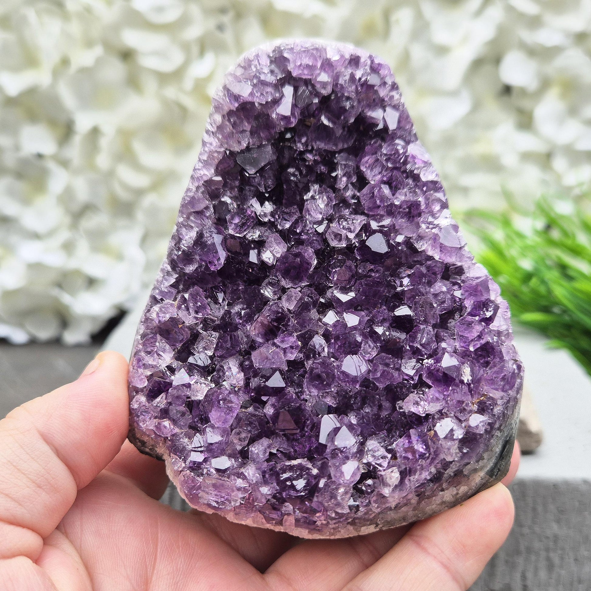 This beautiful Amethyst geode from Brazil features deep purple points and a natural open-face formation.