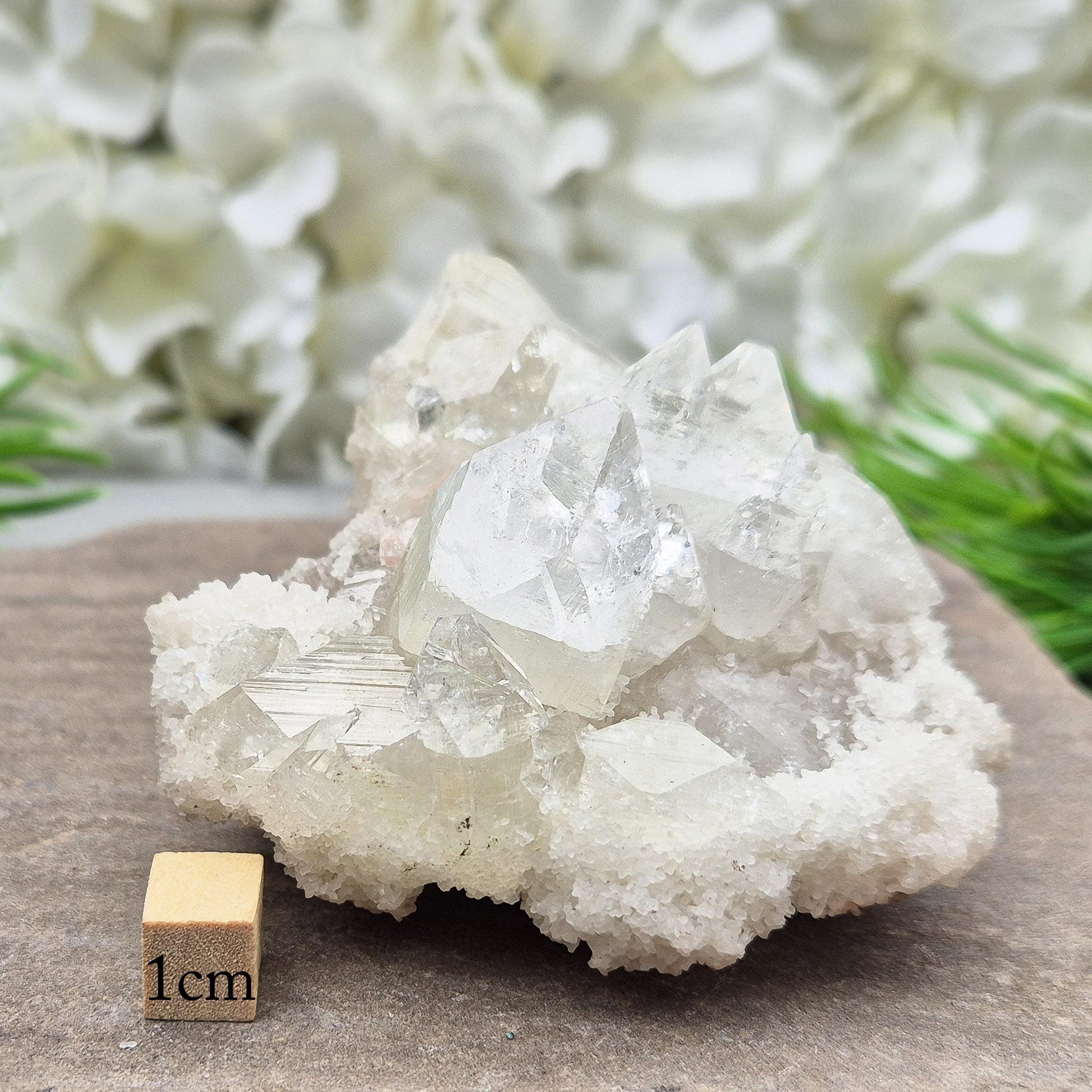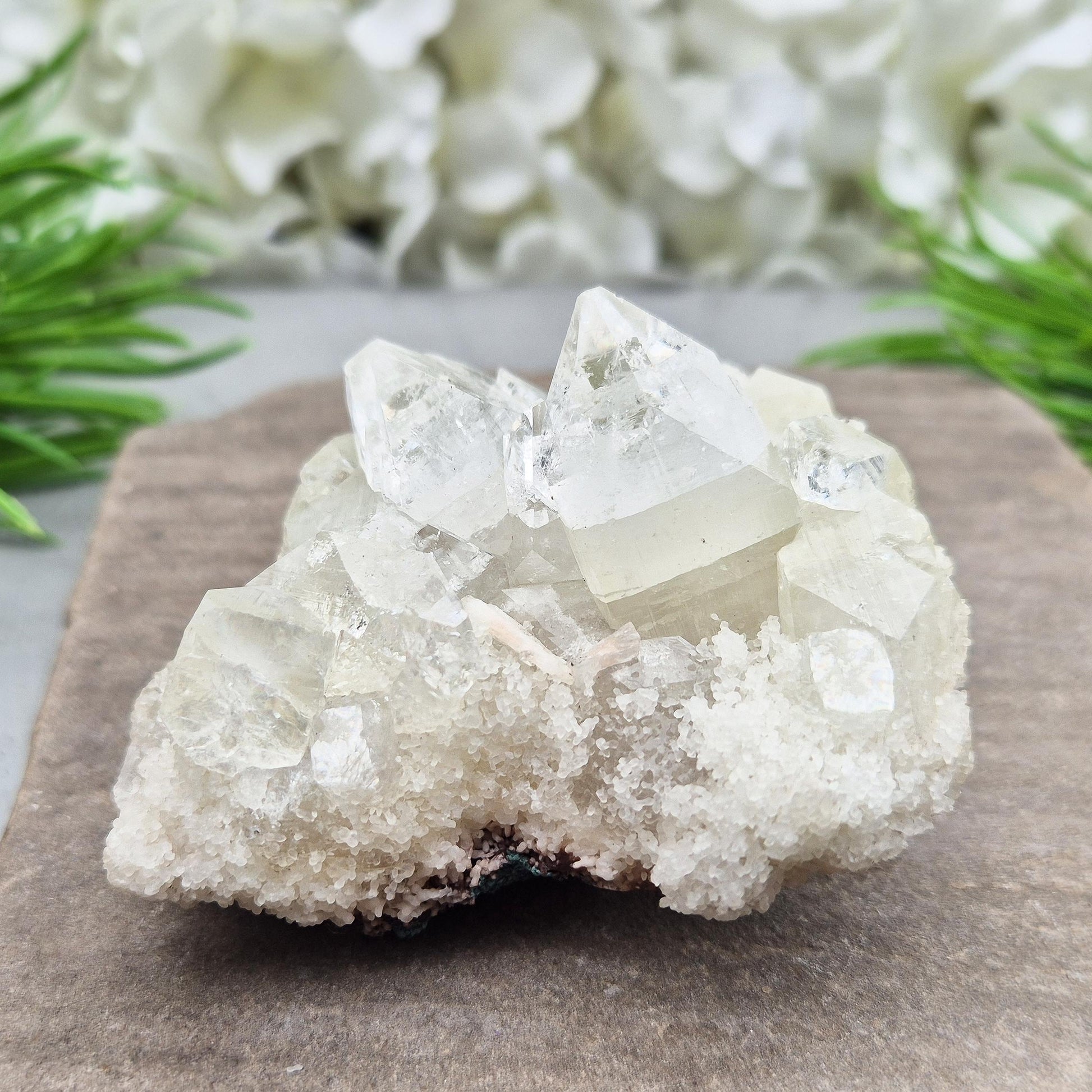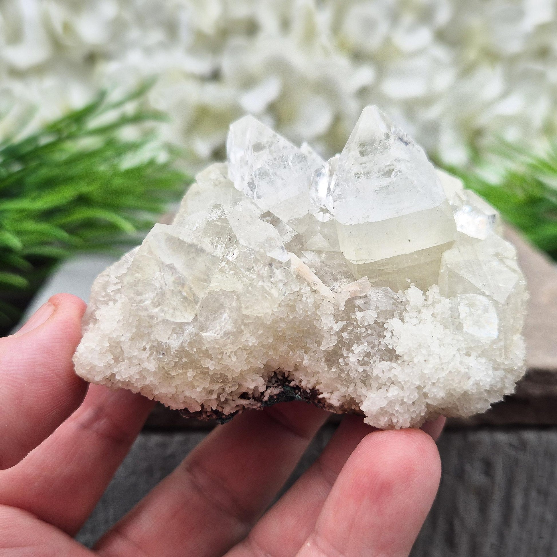 Apophyllite is part of the Zeolite family and is often sought after for its energy that feels both calming and uplifting. This piece brings beauty and spiritual depth together in one lovely cluster.