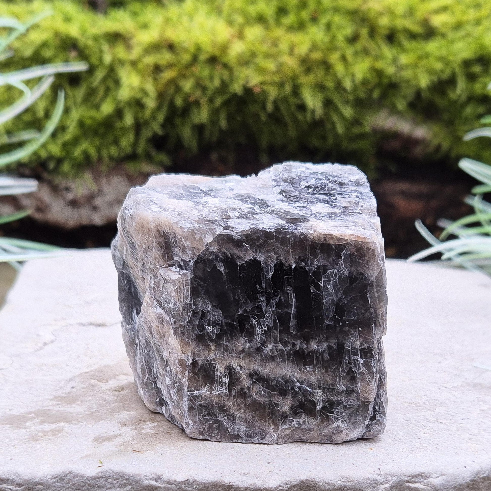 Natural piece of Black Moonstone from Madagascar. It’s a variety of Moonstone known for its dark grey to black tones, often showing subtle flashes of silver, peach, or white.