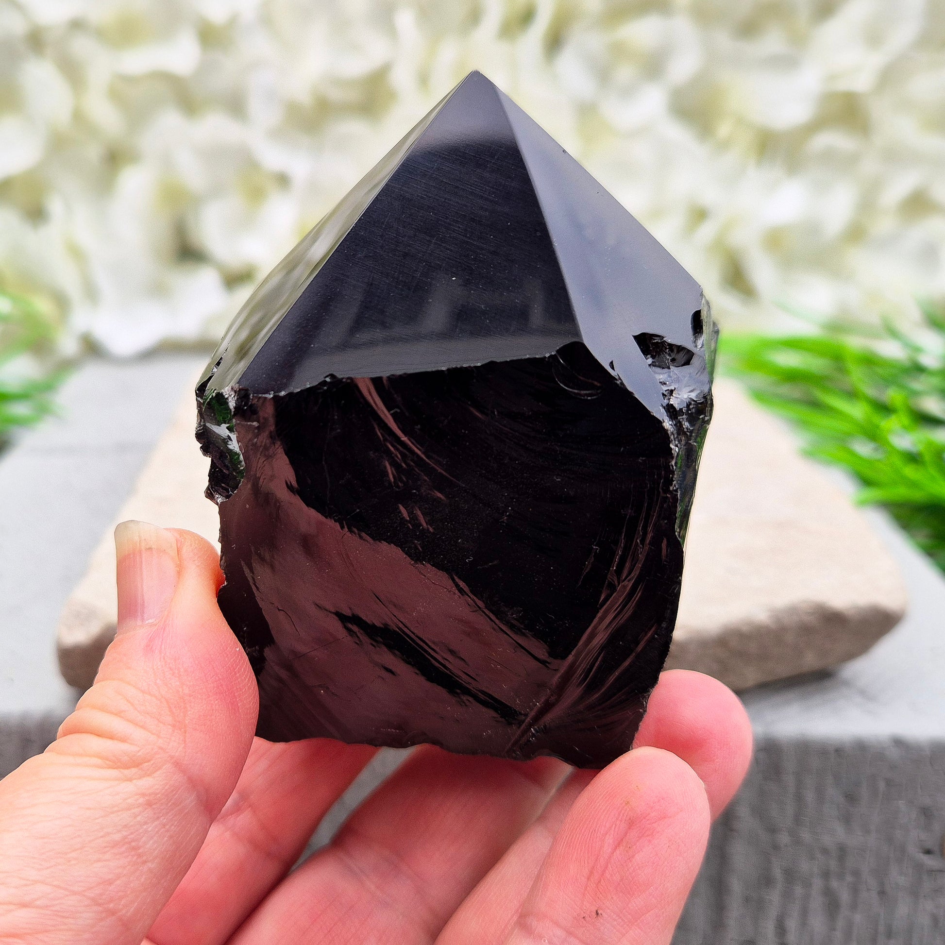 Black Obsidian Standing Point - Polished Tip, Natural Sides