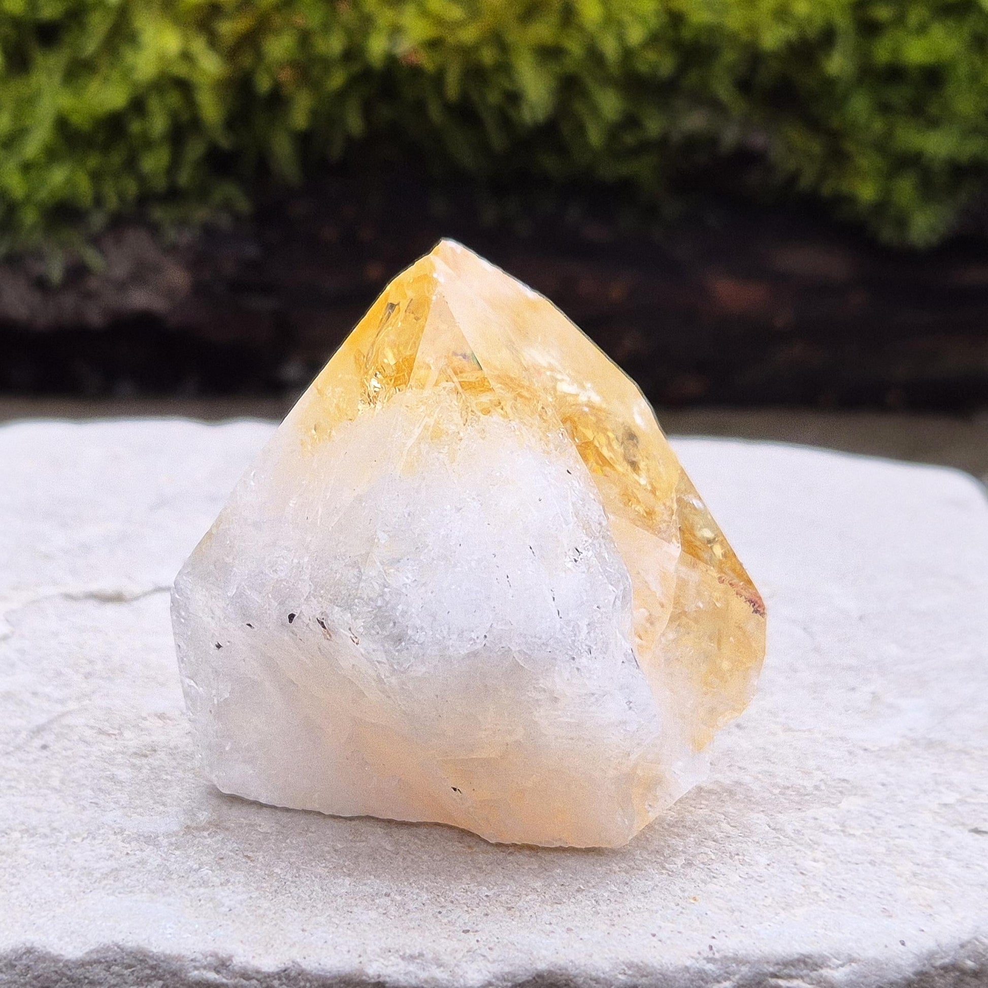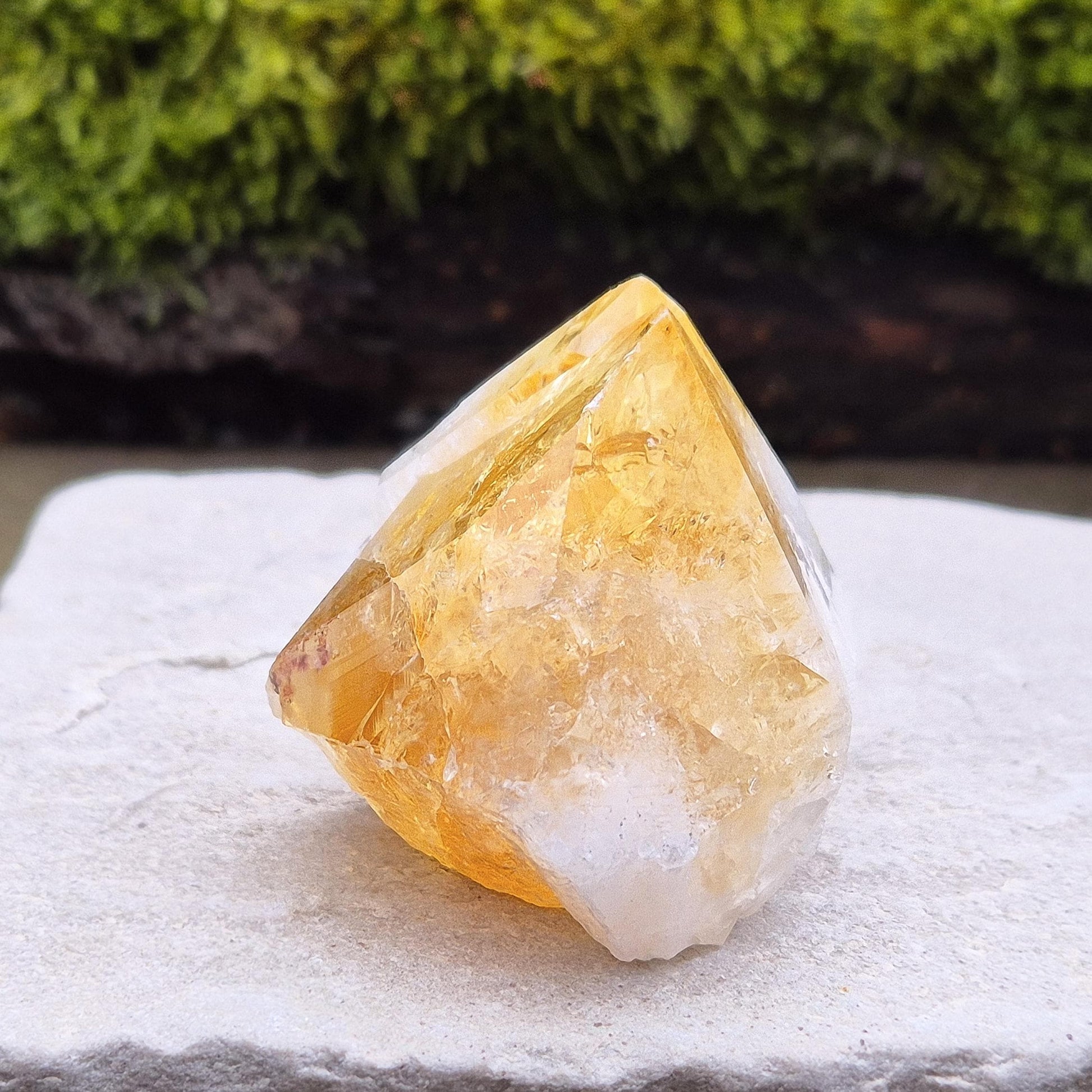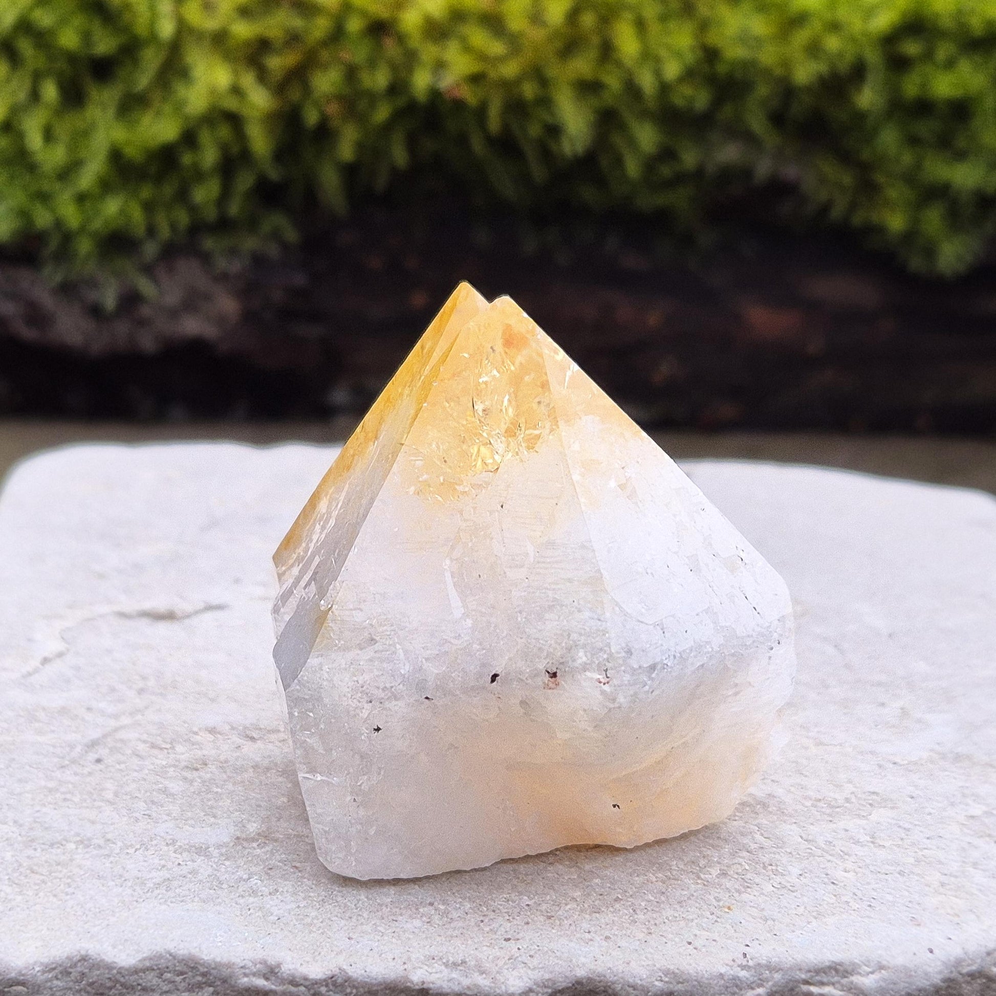 This lovely Citrine Crystal Standing Point features a double polished tip and natural sides. With a flat base, this crystal point can stand on its own, making it perfect for display or use in energy work, meditation, or personal spaces.