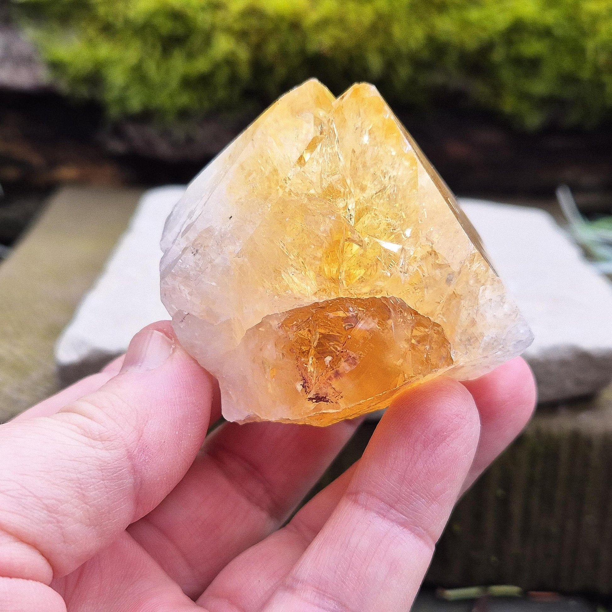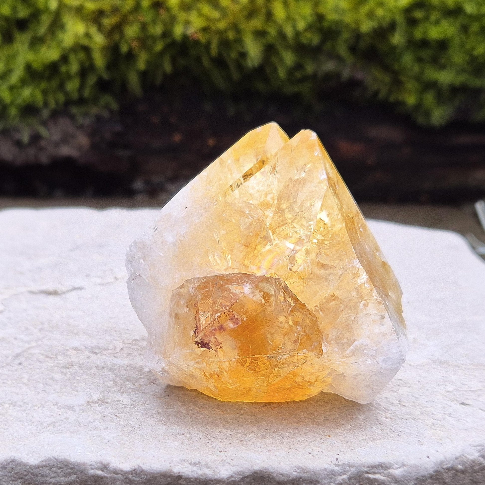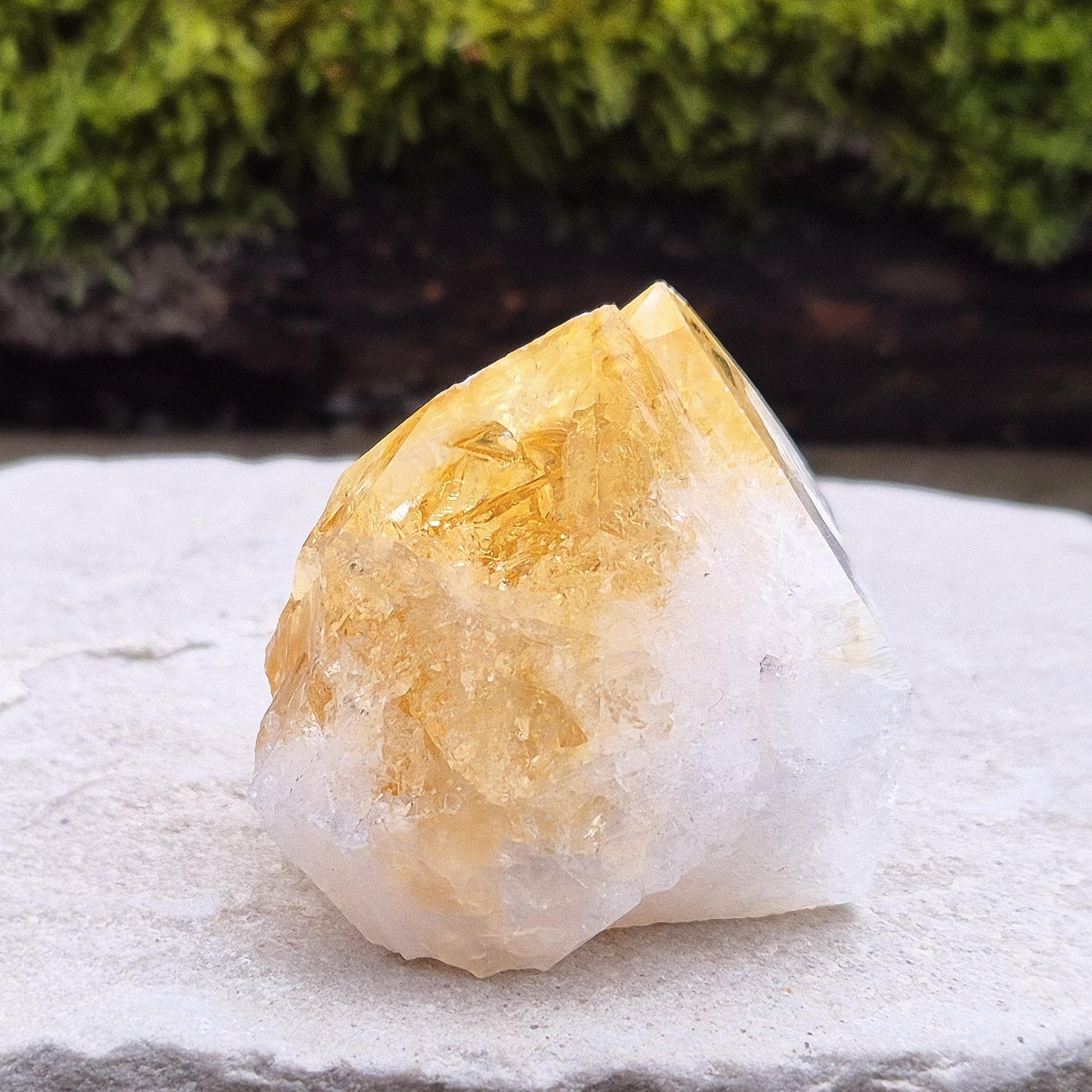 This lovely Citrine Crystal Standing Point features a double polished tip and natural sides. With a flat base, this crystal point can stand on its own, making it perfect for display or use in energy work, meditation, or personal spaces.