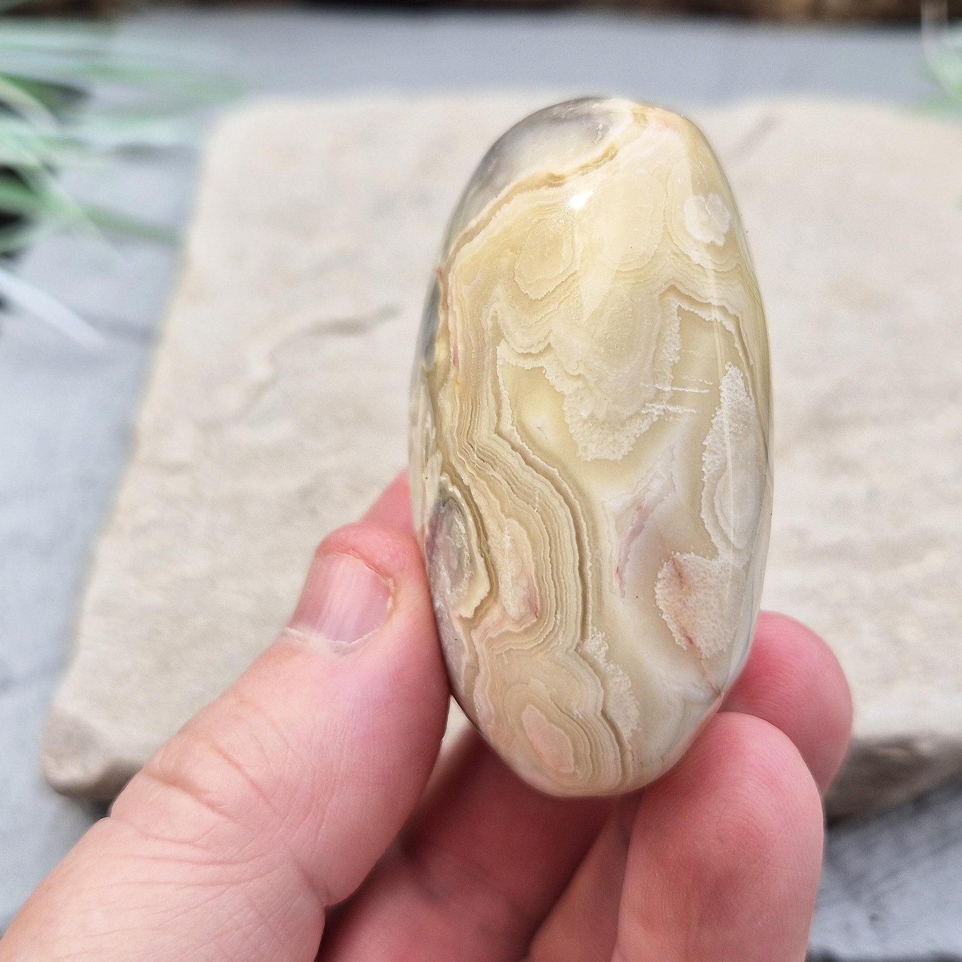 Crazy Lace Agate Crystal Palm Stone, Mexican Agate