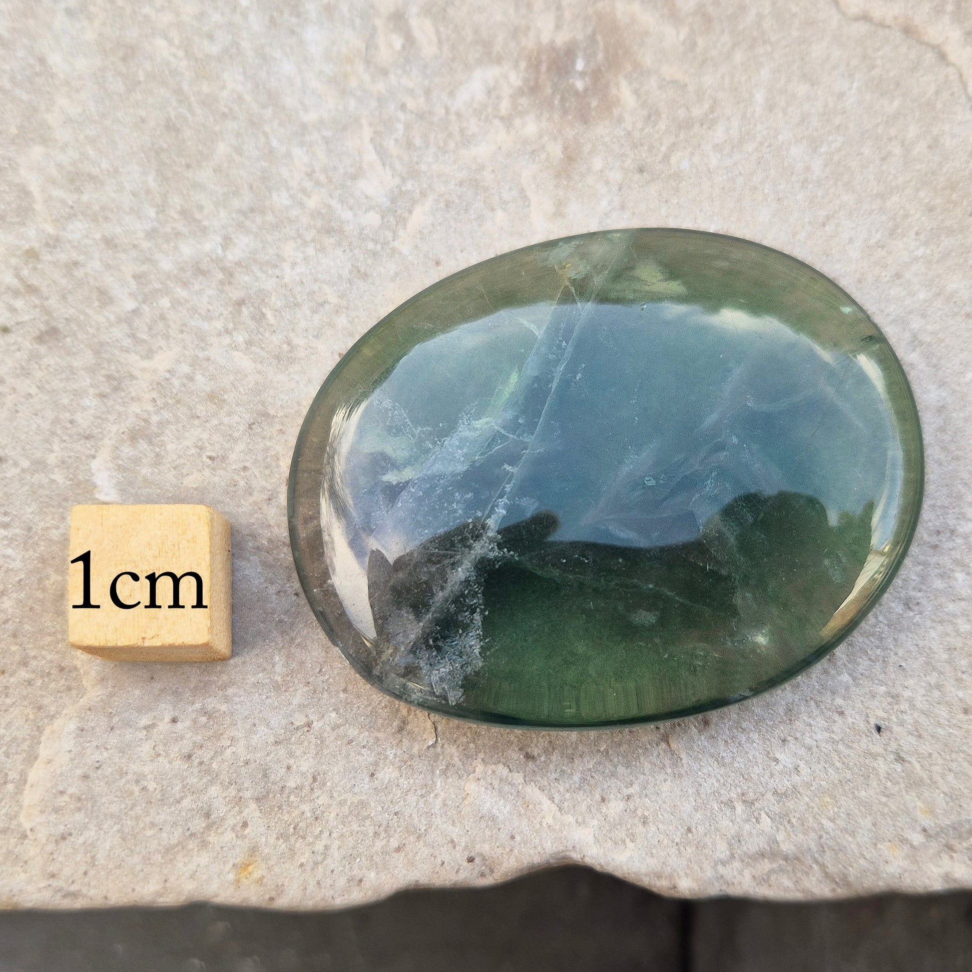 This lovely Fluorite crystal palm stone features a predominantly green color with a transparent quality. Green Fluorite brings your thoughts and feelings into balance. It steadies emotions, clears confusion, and helps you stay calm and practical in everyday life.
