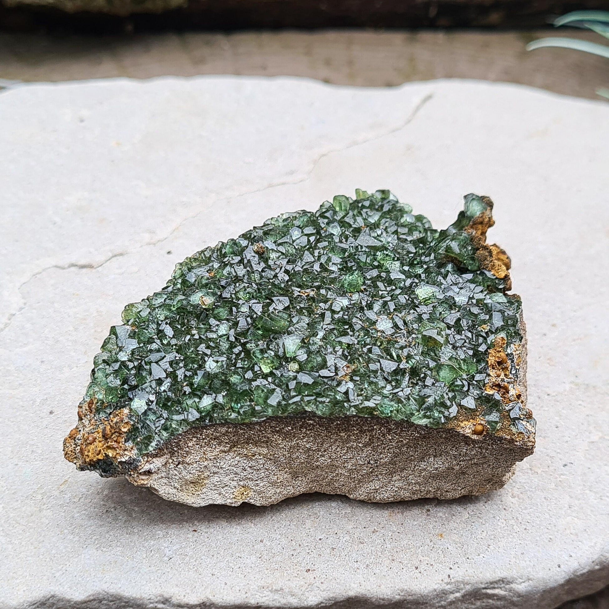 Ludlamite Crystal Cluster. This rare Ludlamite crystal specimen features deep, vibrant green crystals naturally embedded in their original matrix. Ludlamite is prized for its stunning colour and scarcity. Named after American mineralogist William H. Ludlam after its discovery in 1954, this piece is a unique and valuable addition for any crystal collector or enthusiast.