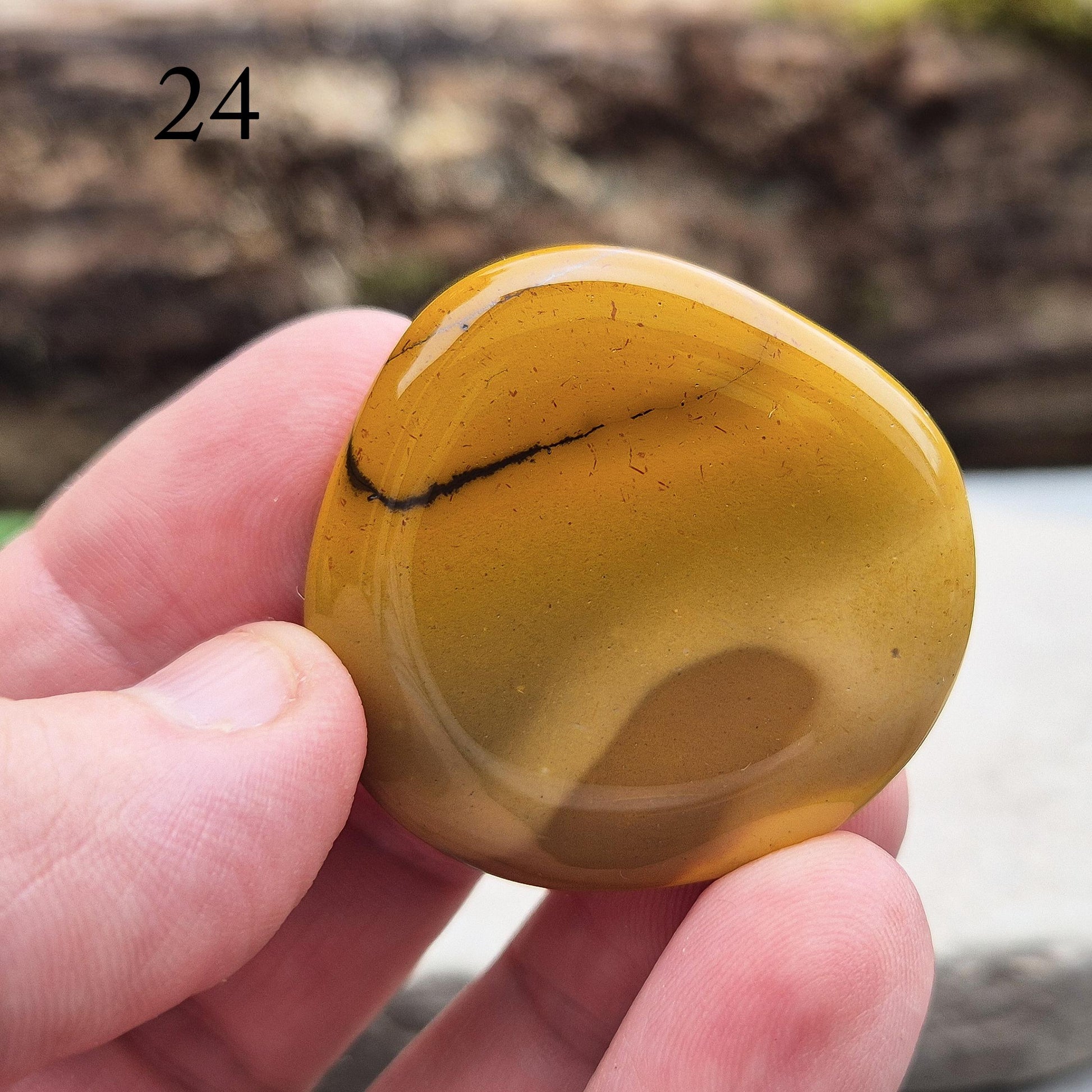 Mookaite Crystal Palm Stone. From the Mooka Creek region in Western Australia, each Mookaite palm stone displays a unique mix of earthy tones—reds, yellows, creams, and purples. Just choose the one that speaks to you.