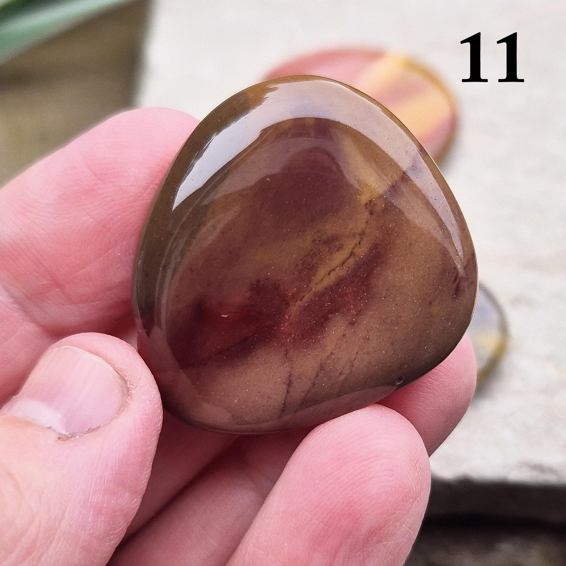 Mookaite Crystal Palm Stone. From the Mooka Creek region in Western Australia, each Mookaite palm stone displays a unique mix of earthy tones—reds, yellows, creams, and purples. Just choose the one that speaks to you.