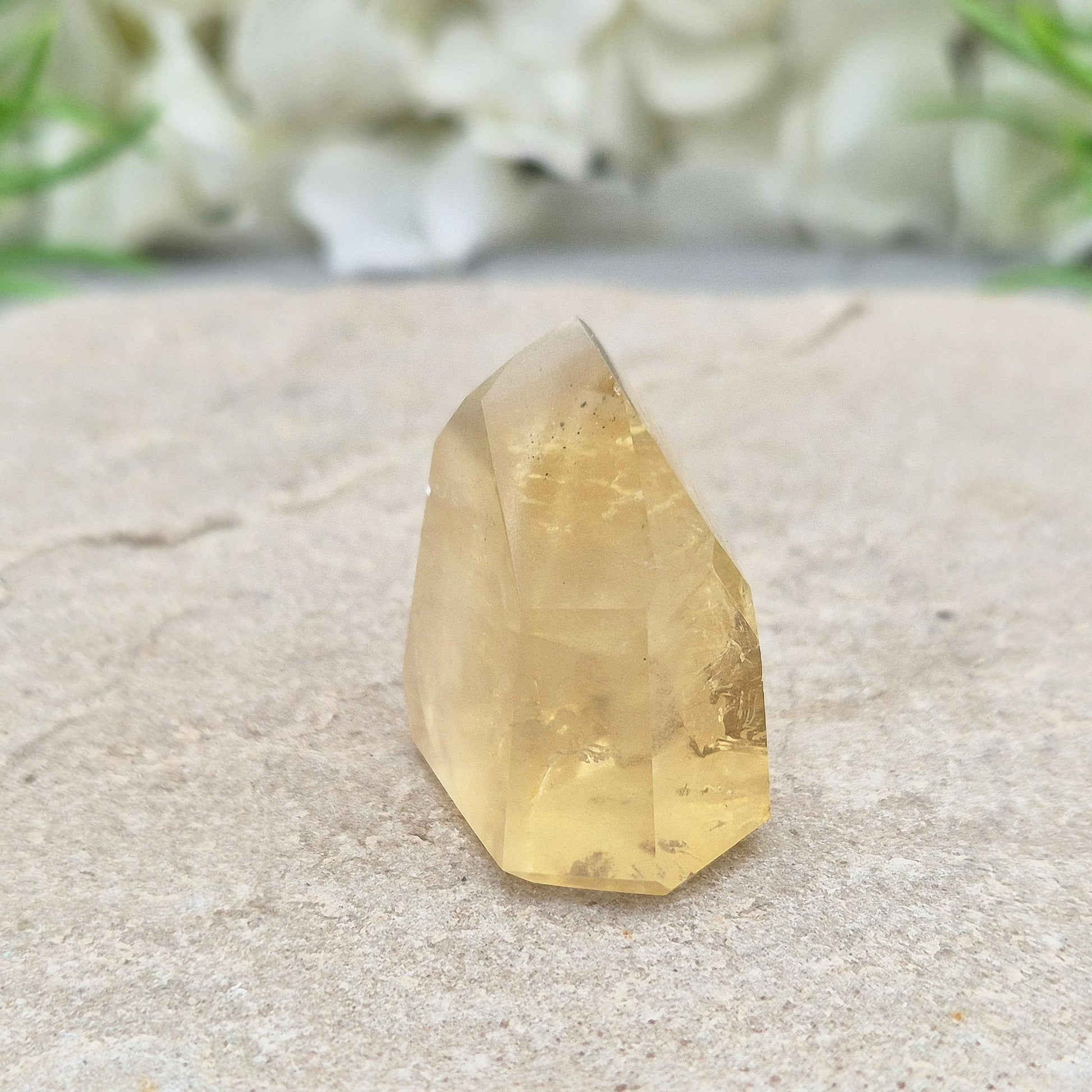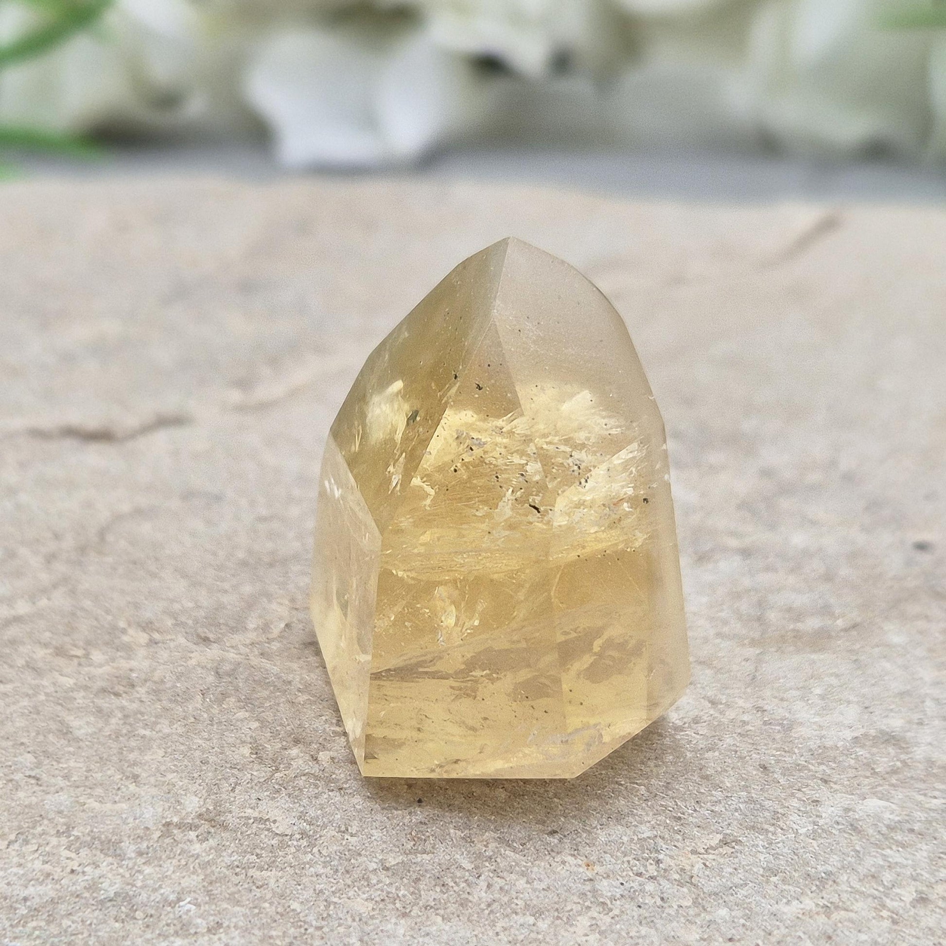 Natural Untreated polished Citrine Point sourced and polished in Brazil. Wonderful light honey citrine colour with light reflecting inclusions. Finding natural citrine is becoming more difficult so I am delighted to have this piece.