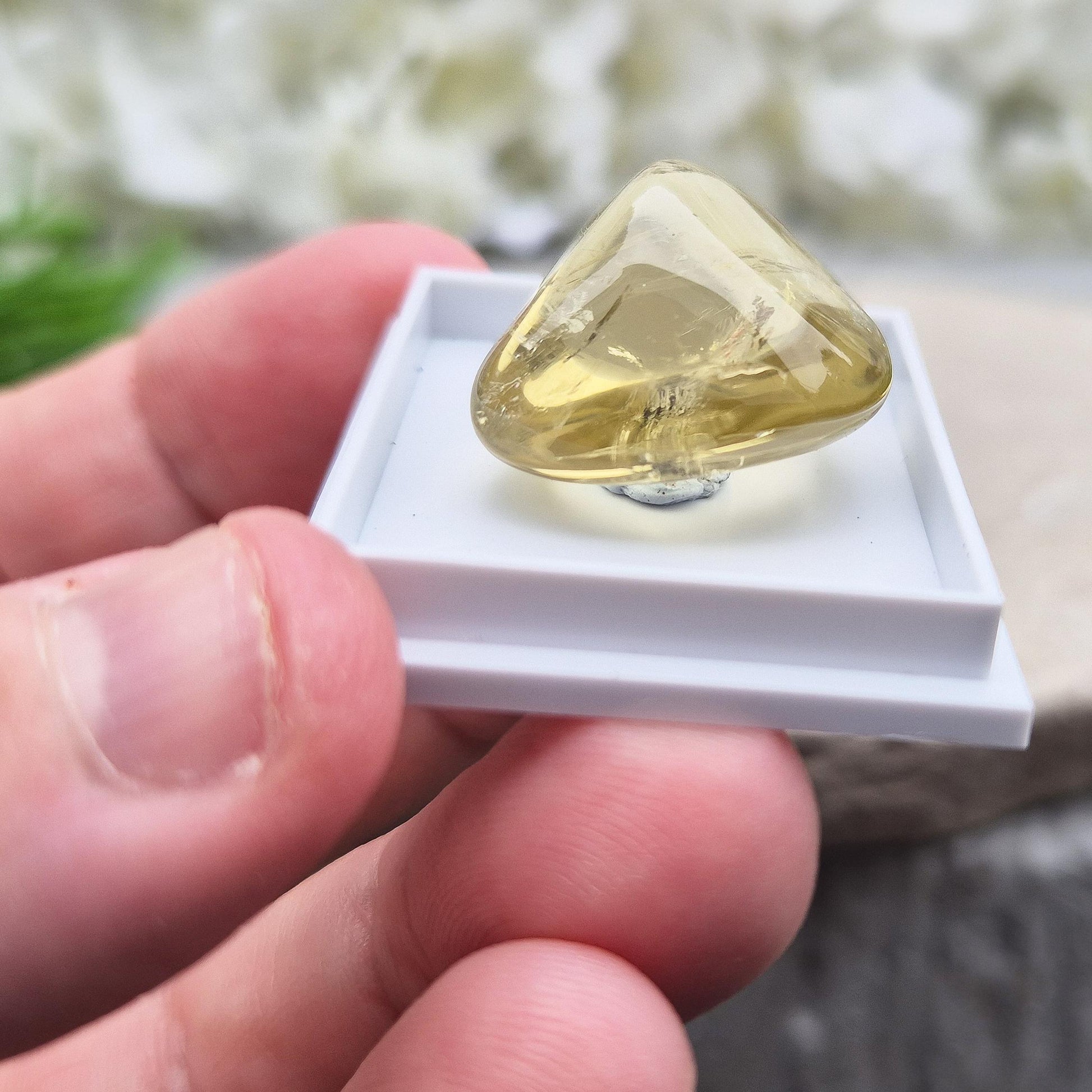 A rarer form of quartz with a distinctive olive-green tone, this Ouro Verde Quartz comes ready to display in a clear sample box (which can be removed if you prefer to carry or grid with it). This unusual variety of quartz is known for its strength and resilience. Said to hold a naturally protective energy that doesn’t need regular cleansing or recharging — making it a useful addition to your everyday crystal toolkit.
