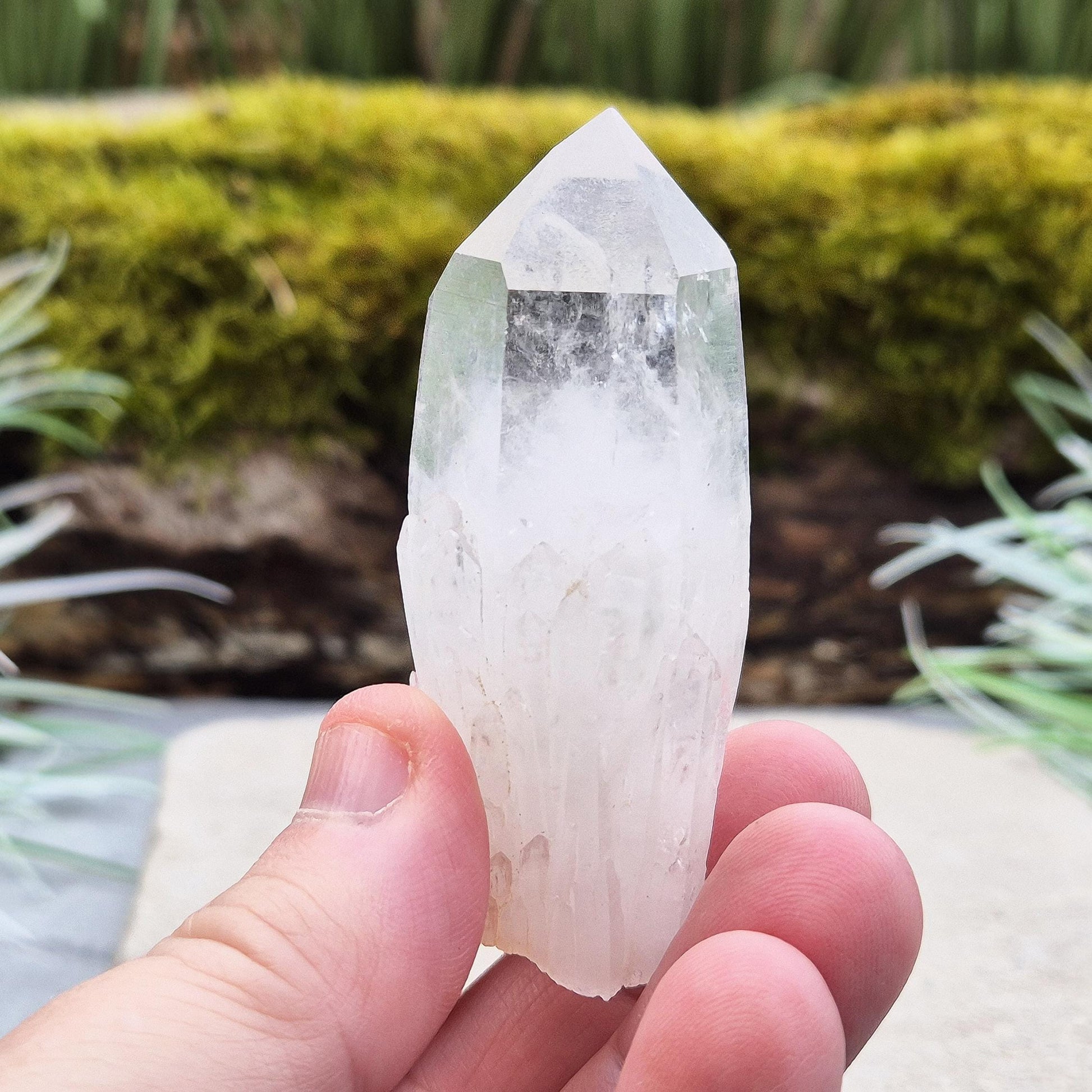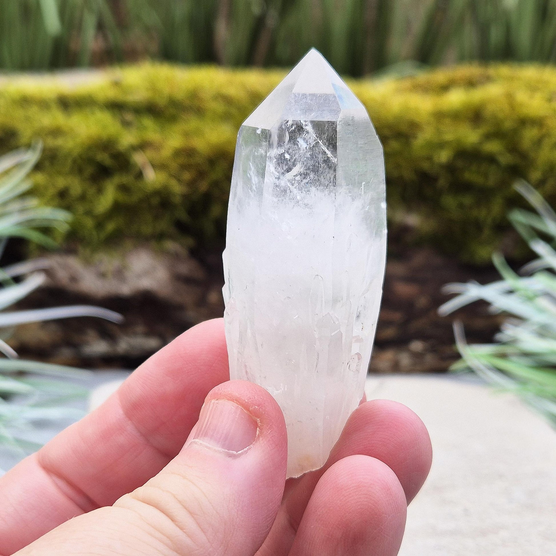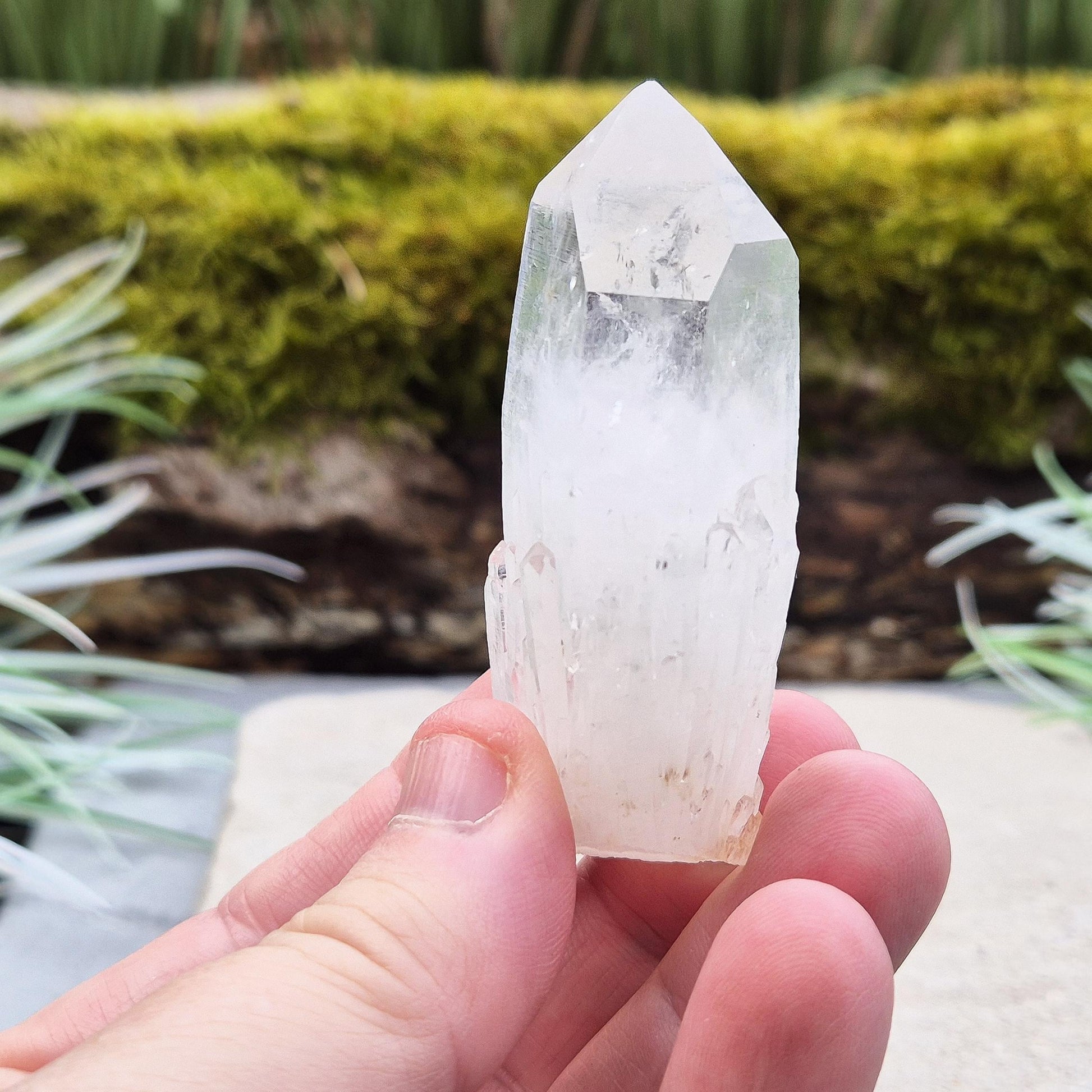 This Natural Quartz Crystal Point comes from Morocco. It features companion crystals clustered around the main point, giving it a unique formation similar to Pineapple Quartz. Its raw, unpolished appearance adds natural charm and makes it a distinctive piece for collectors and enthusiasts alike.