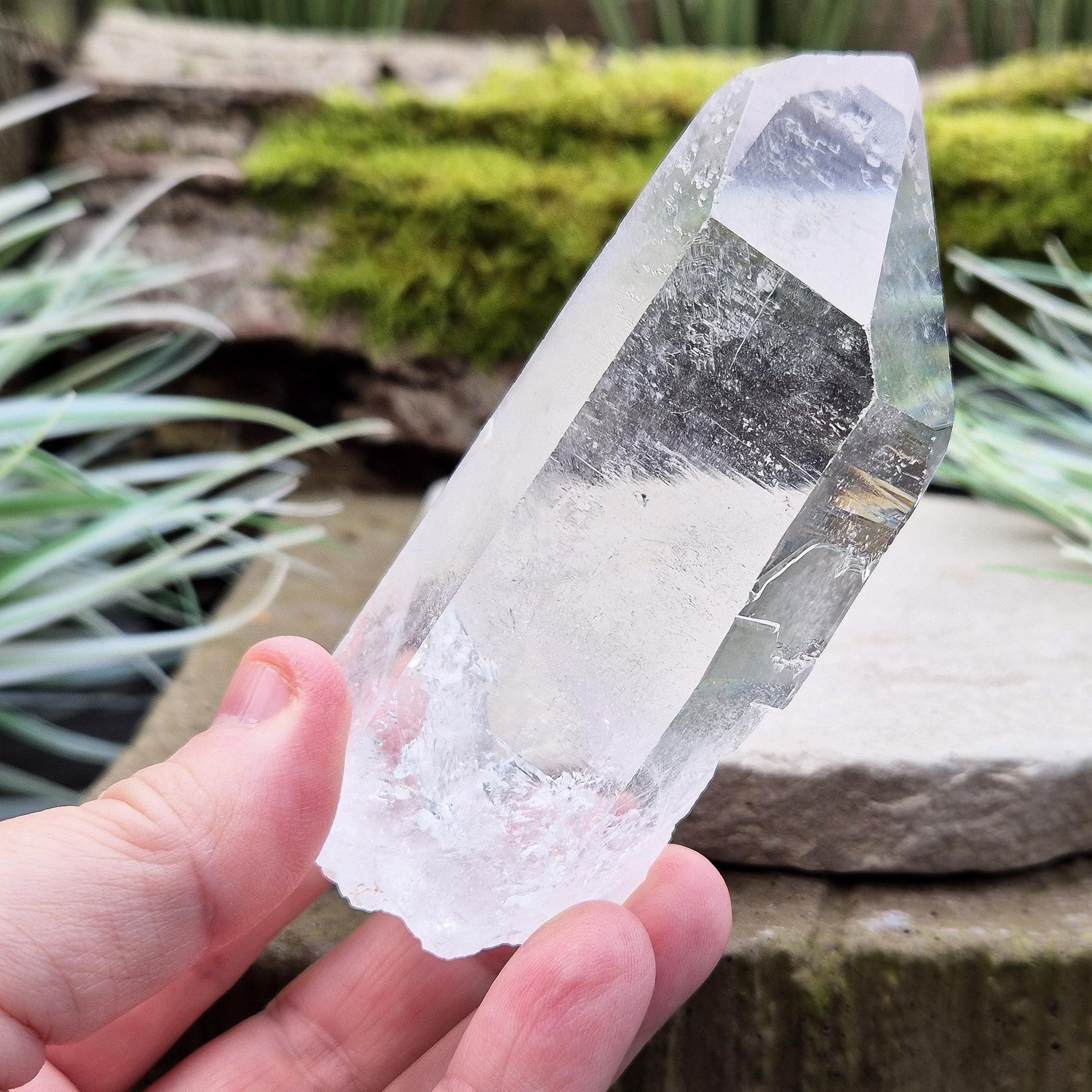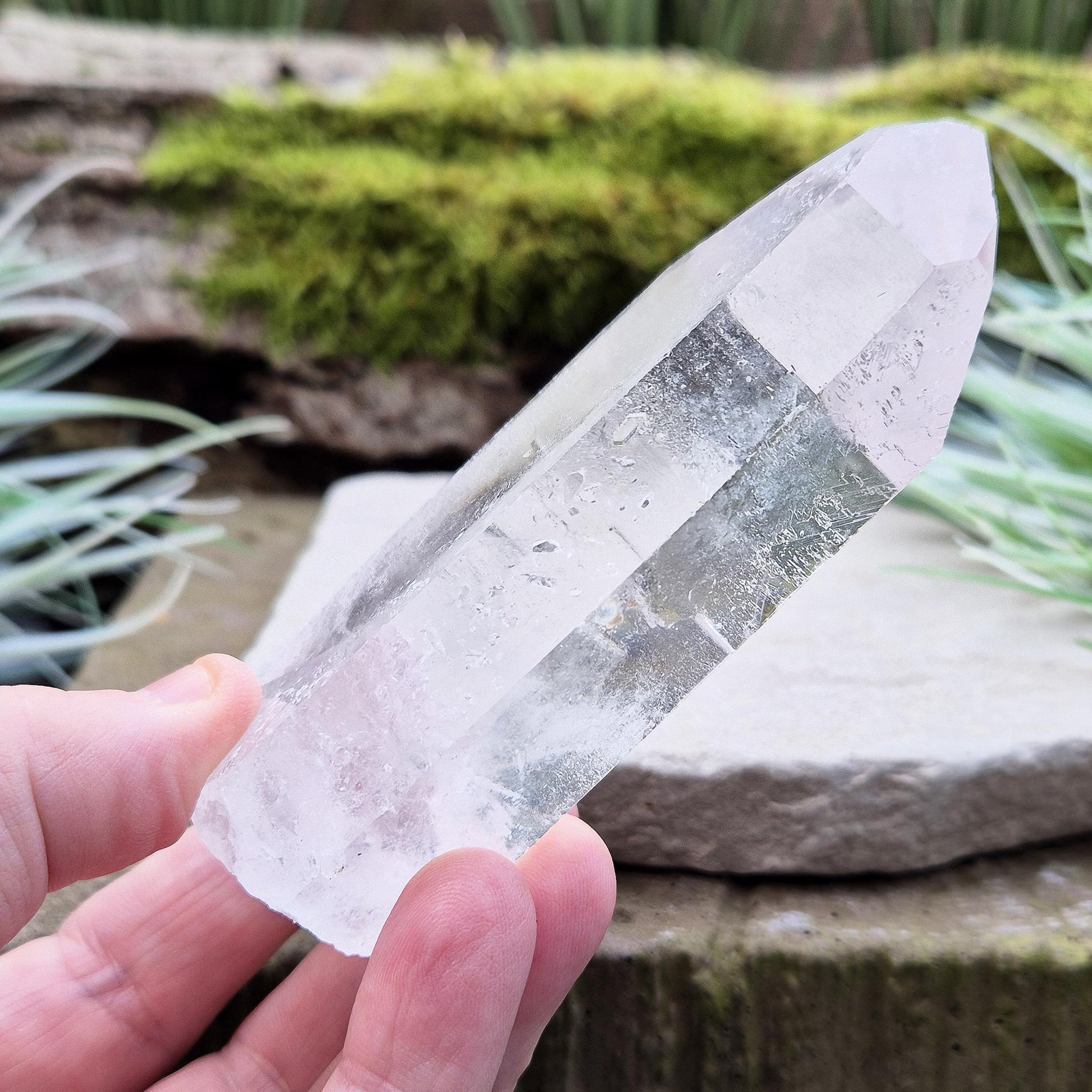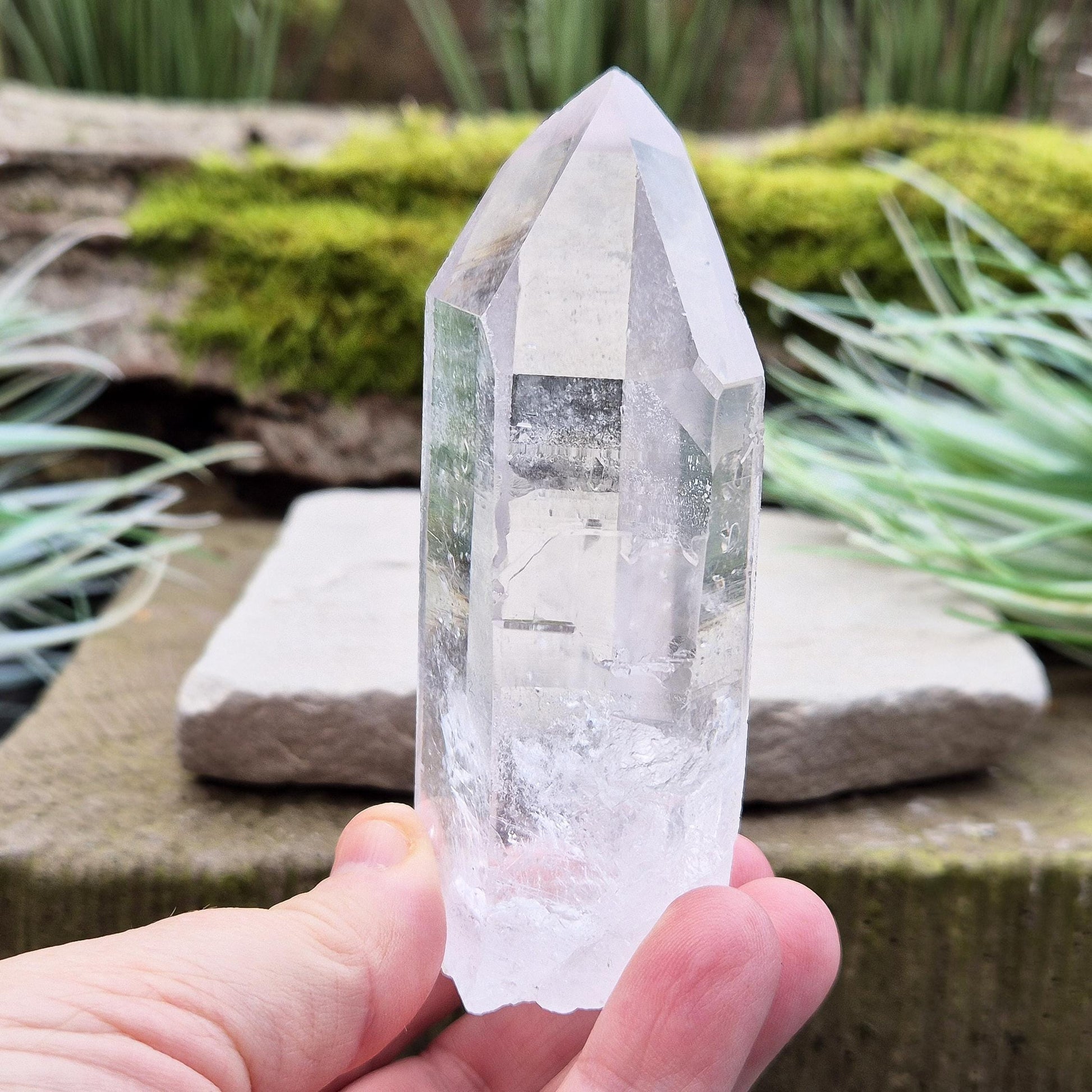 Quartz Crystal Point. This is a wonderfully natural quartz point with wispy inclusions and nice clear clarity towards the top of this point. This crystal point offers an authentic, natural touch to any collection.