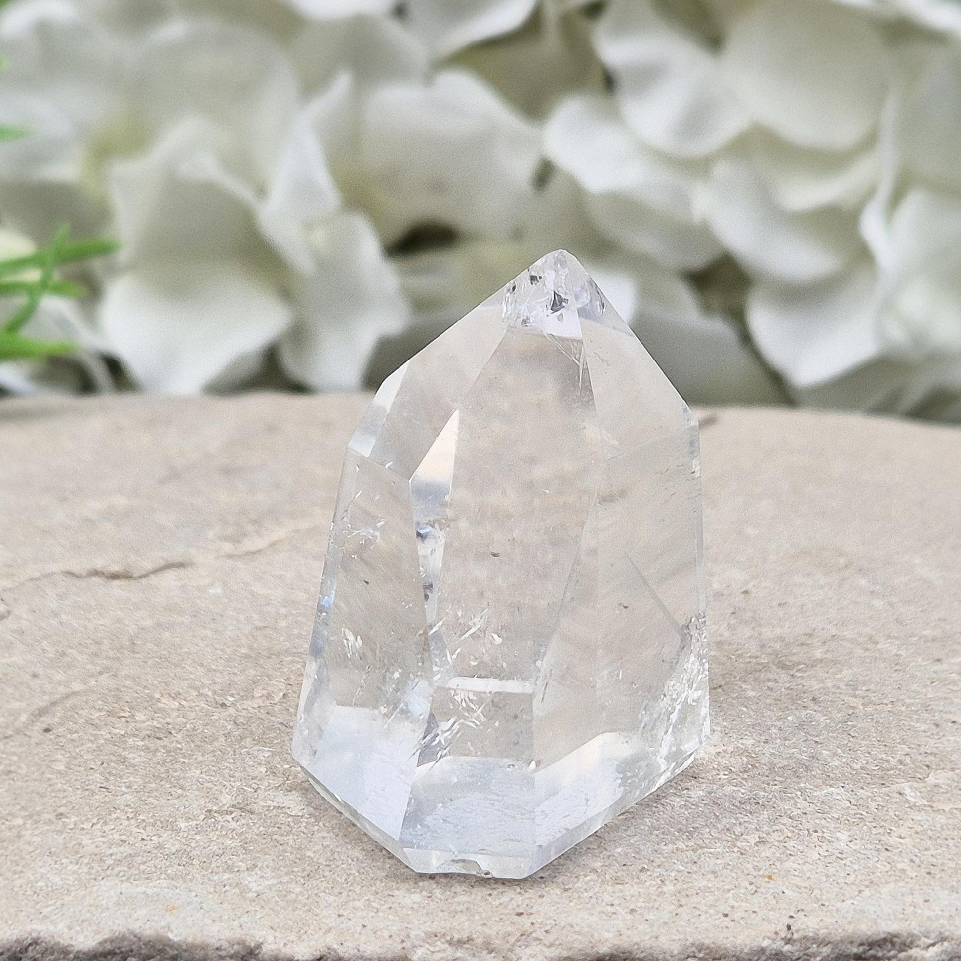 Clear Quartz Polished Point and there looks to be a small phantom at the base of it. Quartz offers steady, uplifting energy that helps you rebalance, refocus, and reconnect with yourself. It brings a calm, grounded strength, supports your spiritual growth, and enhances the crystals you already enjoy working with. It’s a stone that fits effortlessly into everyday life.