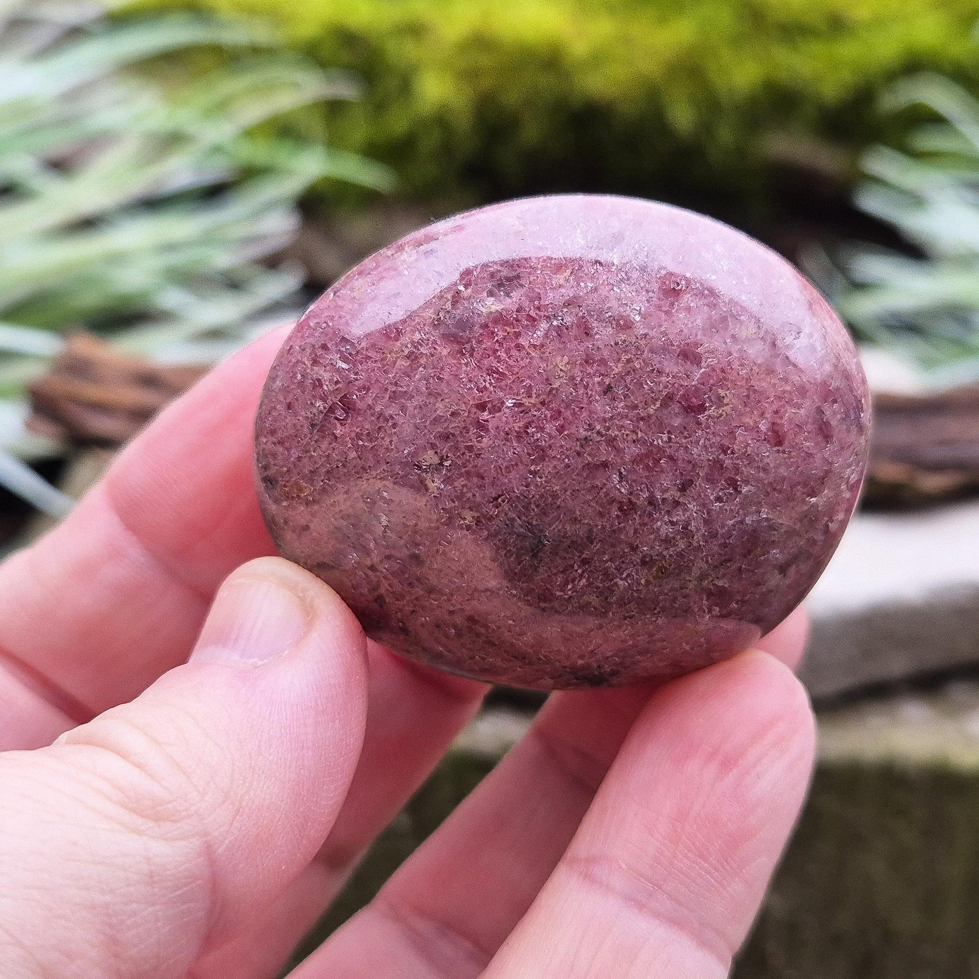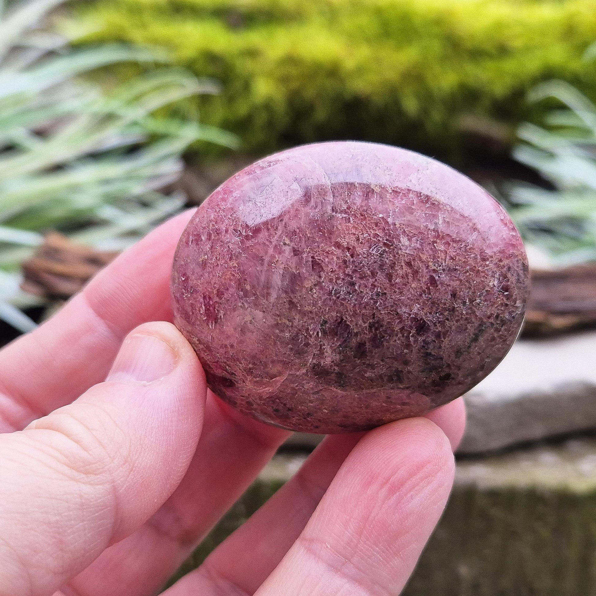 Rhodonite Crystal Pebble – Polished. This polished Rhodonite pebble has a lovely shimmer and is known for its steady, reassuring energy. It’s valued for promoting emotional resilience, reflection, and a compassionate mindset. A grounding and gentle addition to any collection or personal practice.