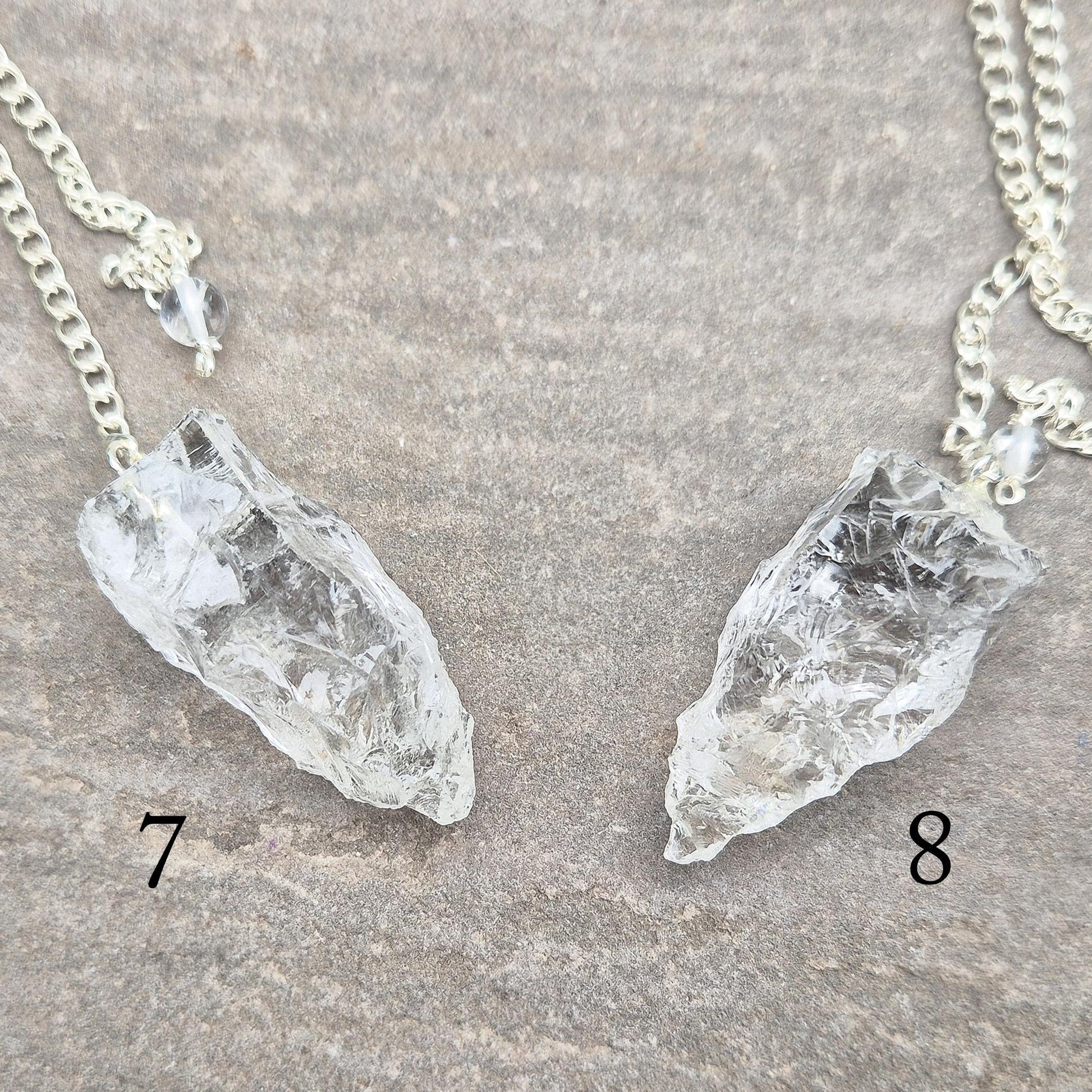 This Rock Quartz Crystal Pendulum from Brazil features a natural quartz crystal and a white bead at the end of the chain. It will come with a card and pouch for safe keeping. You will receive the exact pendulum shown in the photos. Chooose from the selection available.