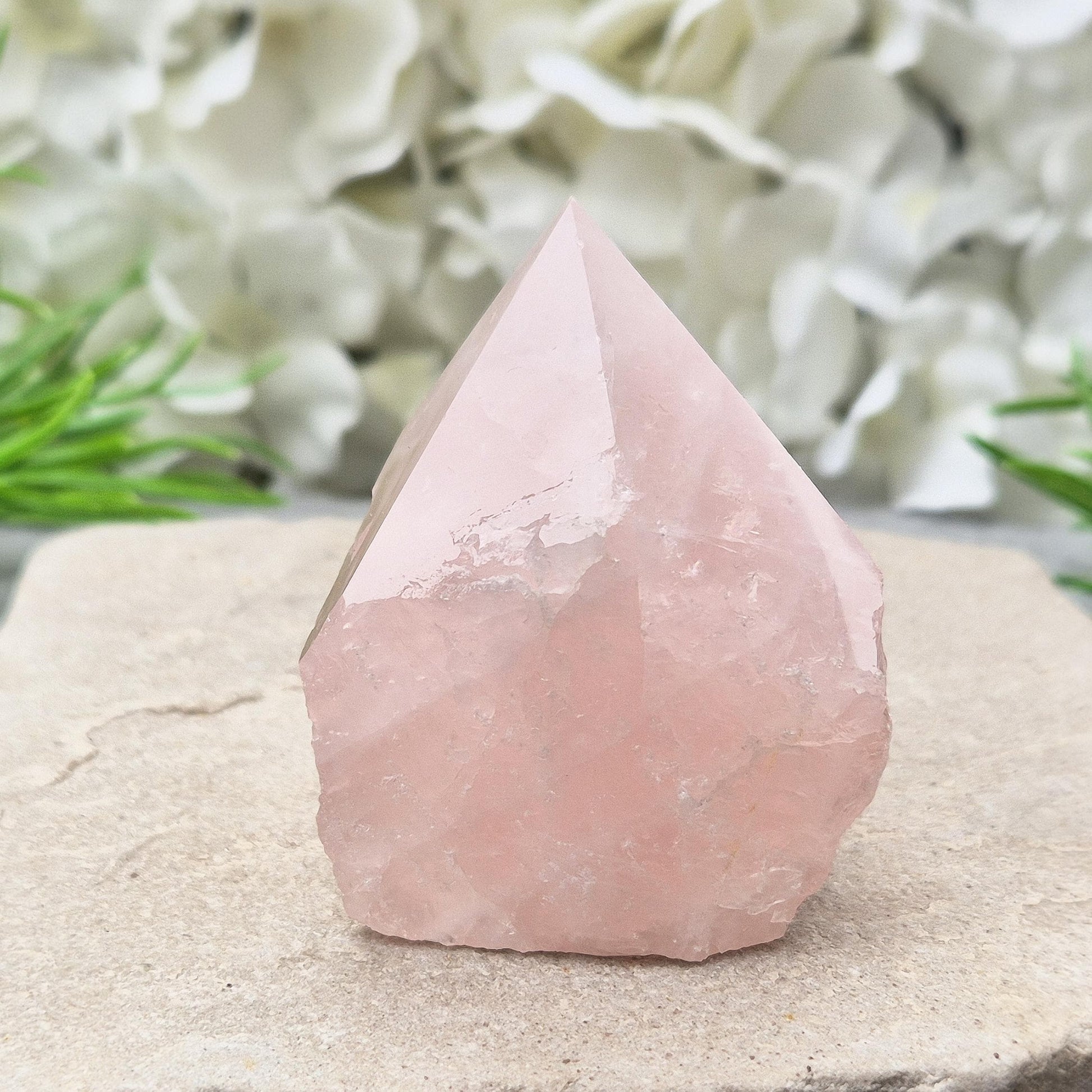 Rose Quartz Crystal Standing Point. This beautiful Rose Quartz standing point comes from Brazil and features a soft, pale pink hue. The polished point and flat, polished base give it a clean, elegant look, while the rest of the crystal remains in its natural form. A classic heart-healing stone, Rose Quartz is a must-have for emotional balance and self-love.