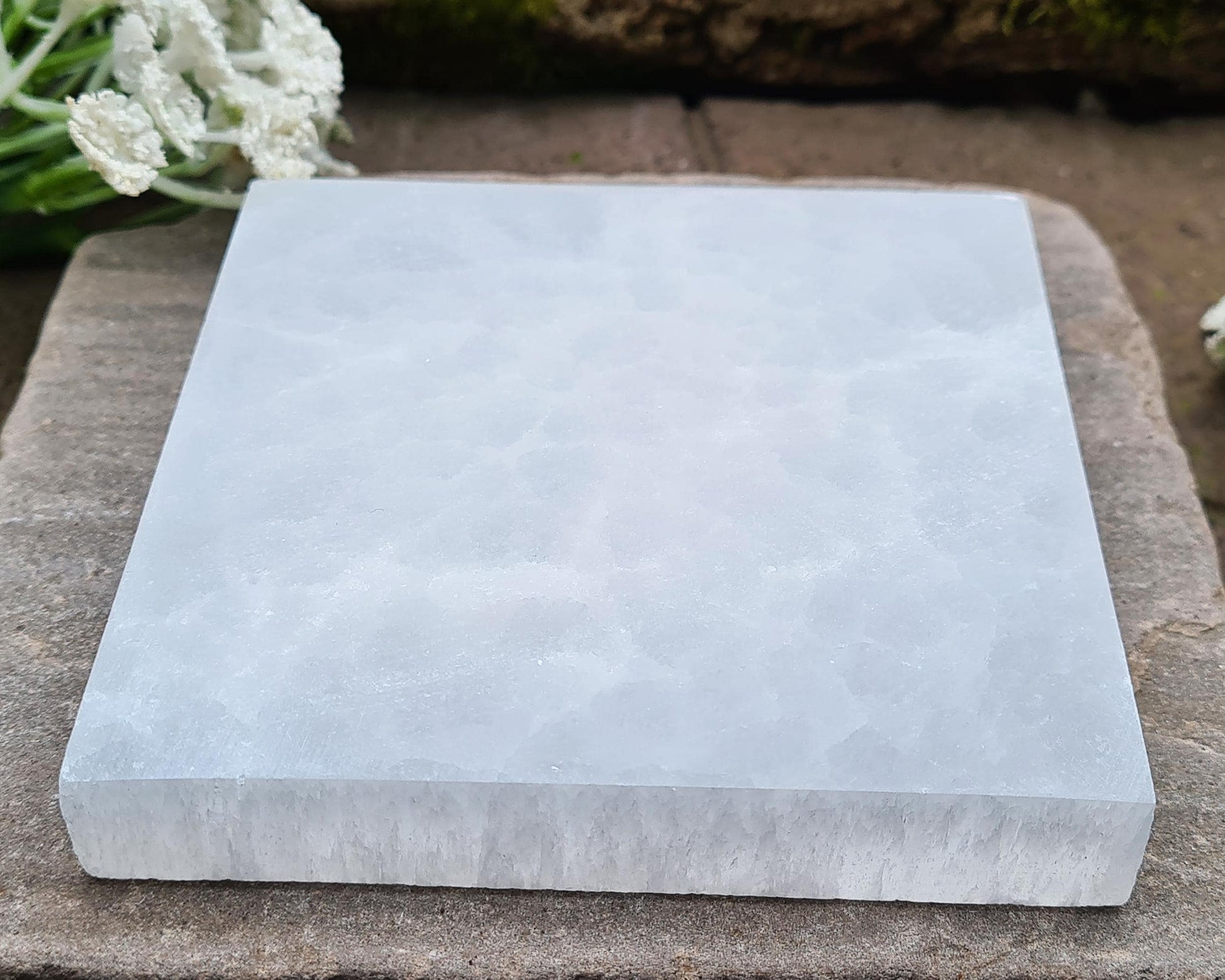 Selenite Charging Plate, Polished Square, cleanse, charge and display your crystals