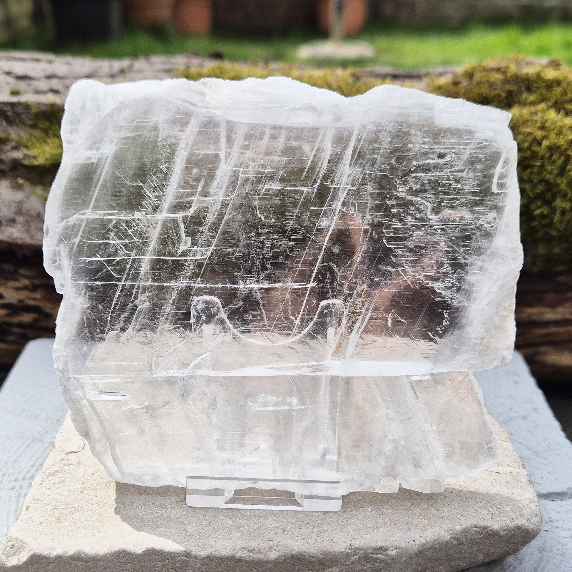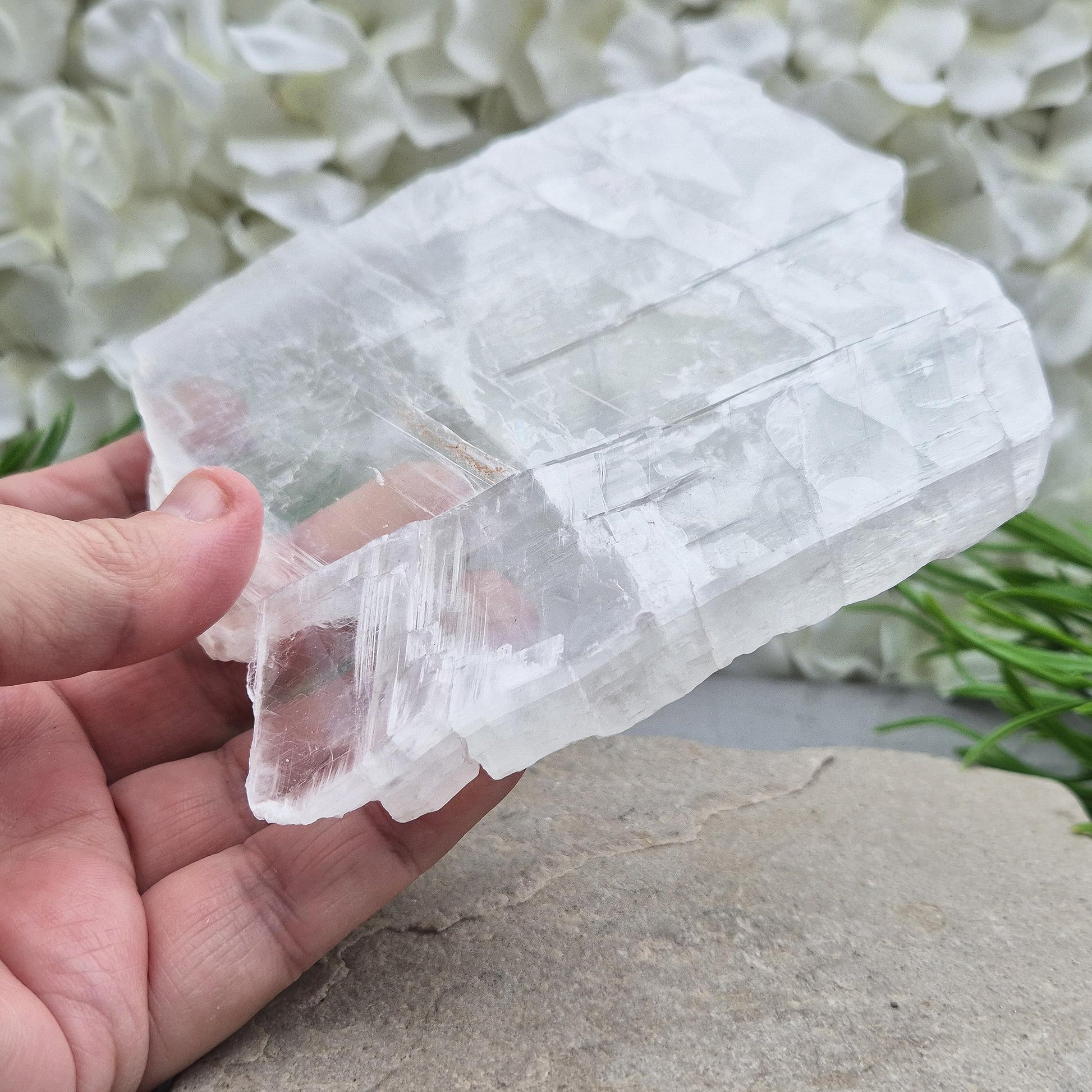 This striking Selenite Window, also known as “Utah Ice,” comes directly from the Glitter Mountain site on the Utah-Arizona border. Naturally formed with exceptional clarity and shine, these high-quality pieces are carefully selected for their purity and luminous appearance.
