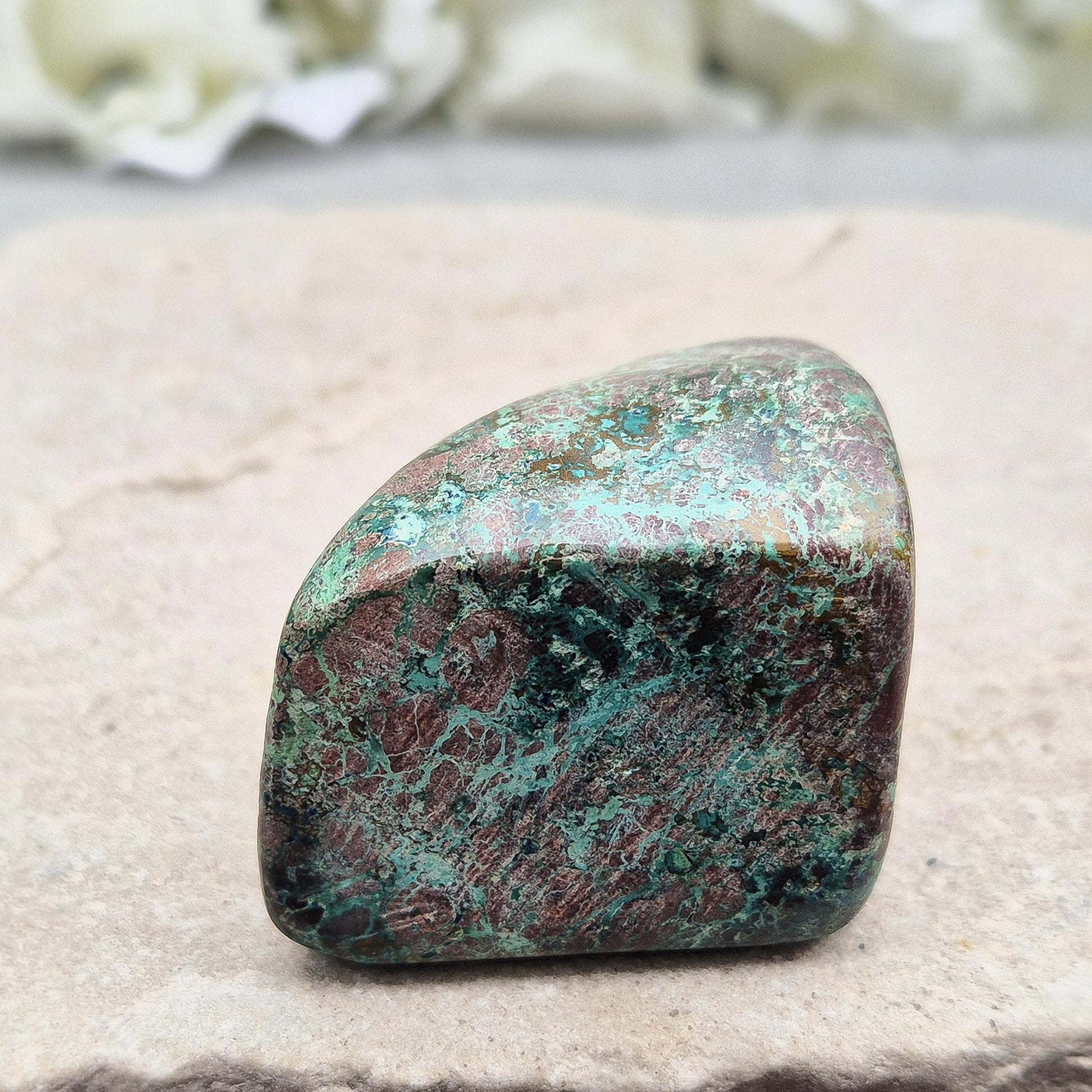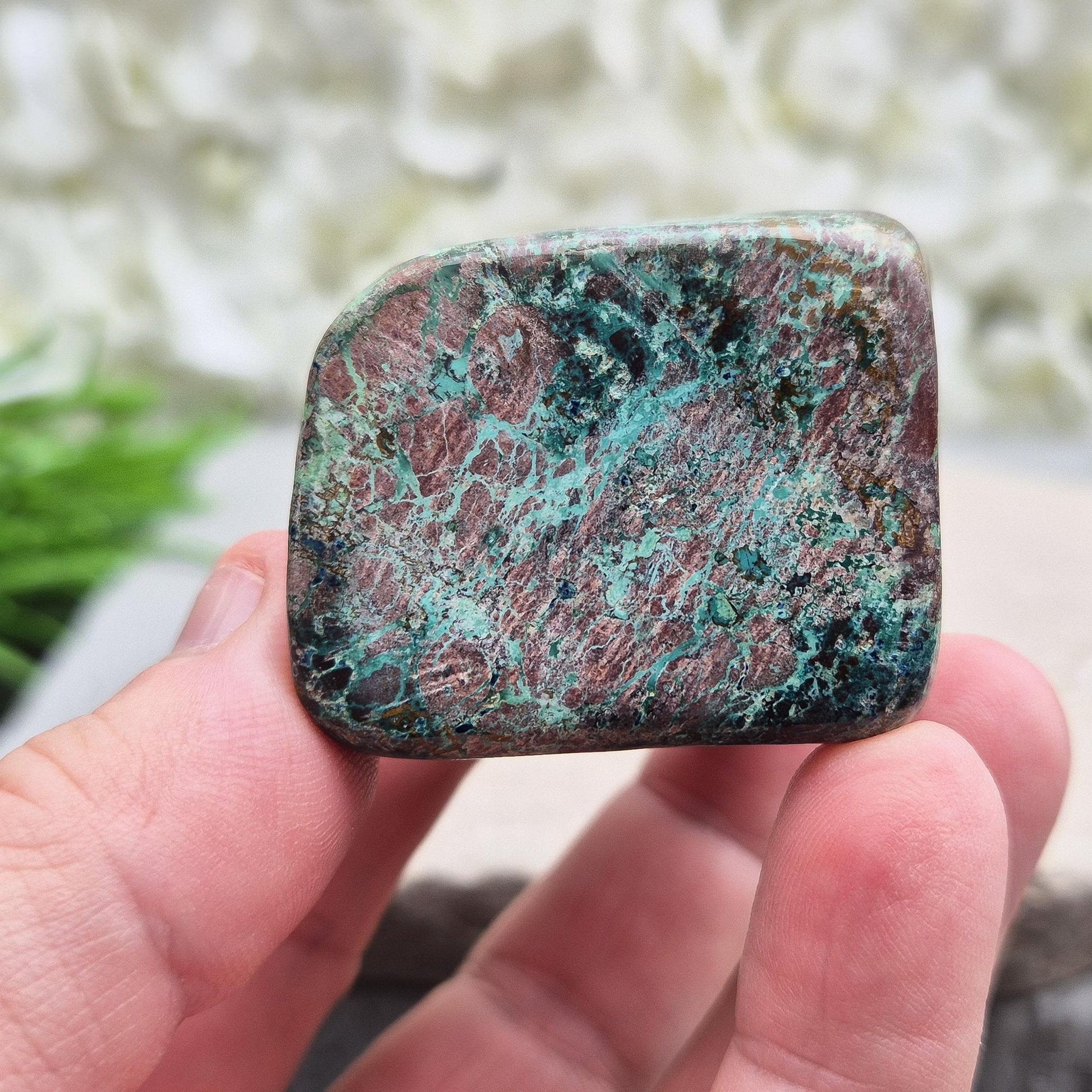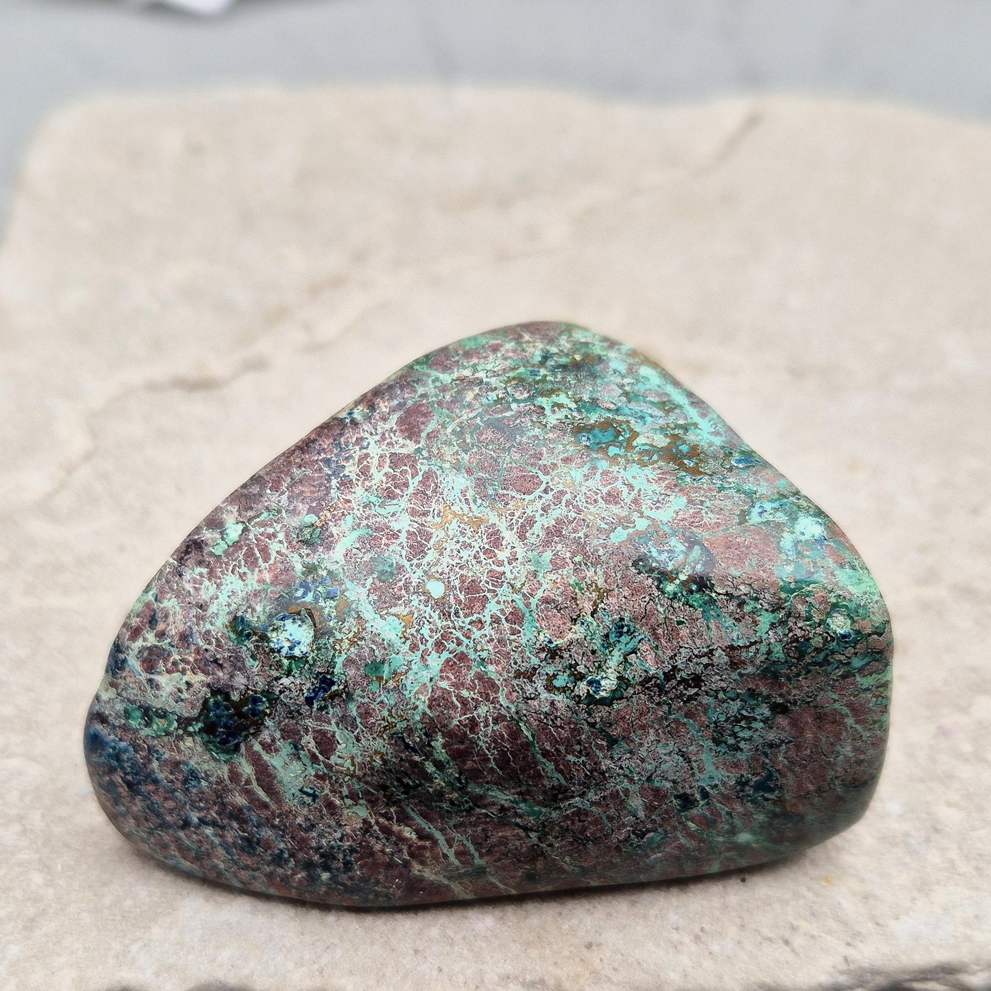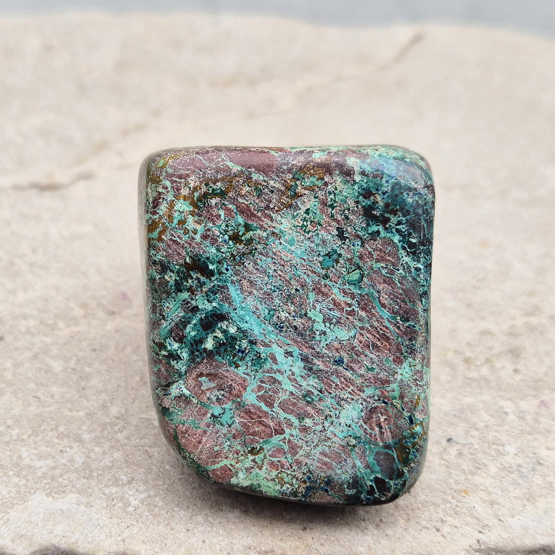 Shattuckite in Chrysocolla & Cuprite Matrix (Polished). A blend of earthy red and turquoise green and blue, this stone carries the energetic depth of copper-rich minerals working in harmony.