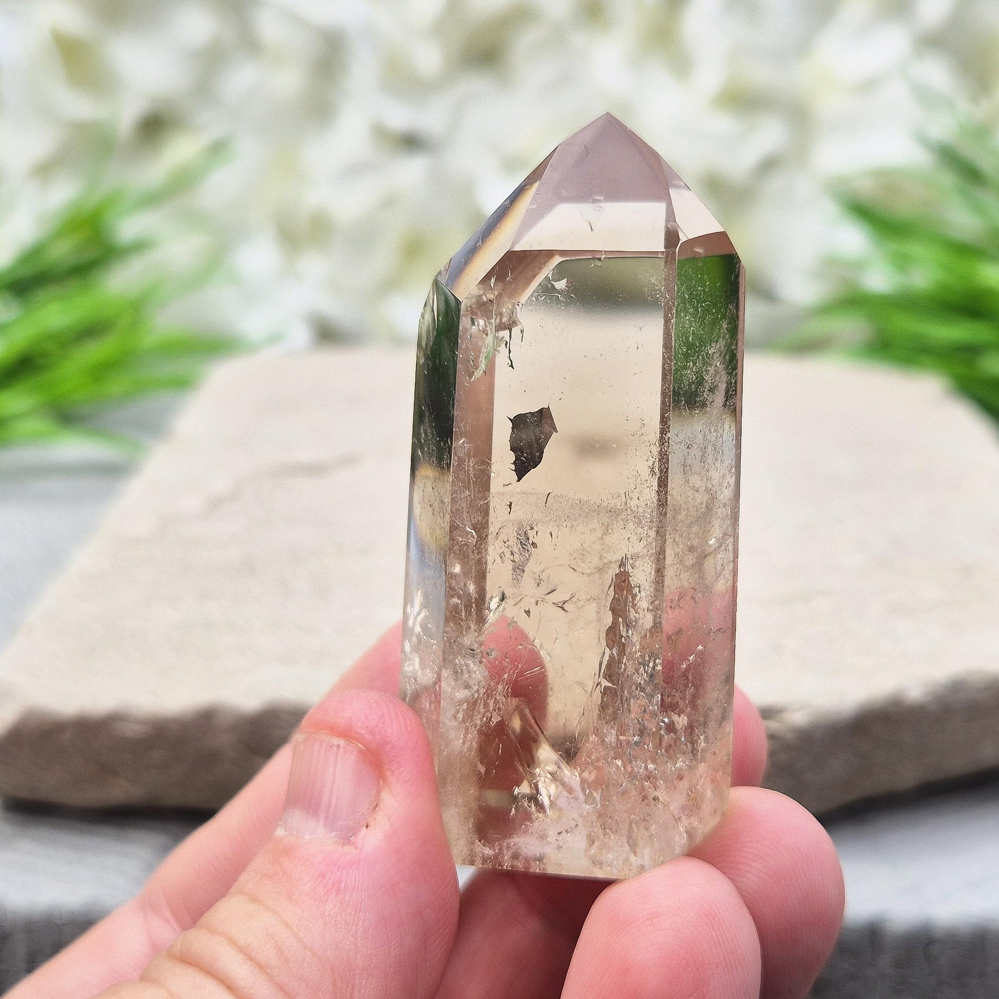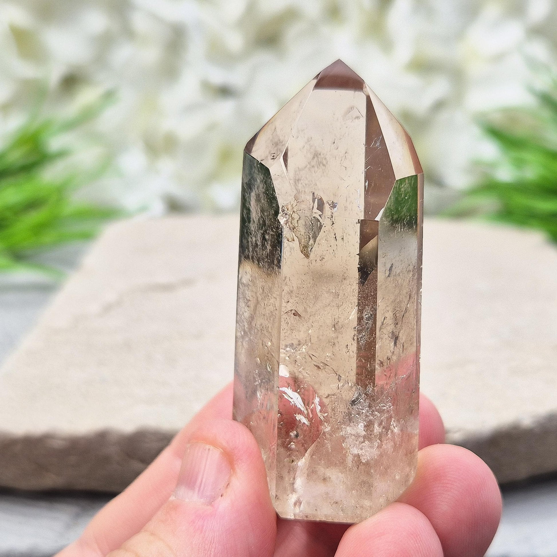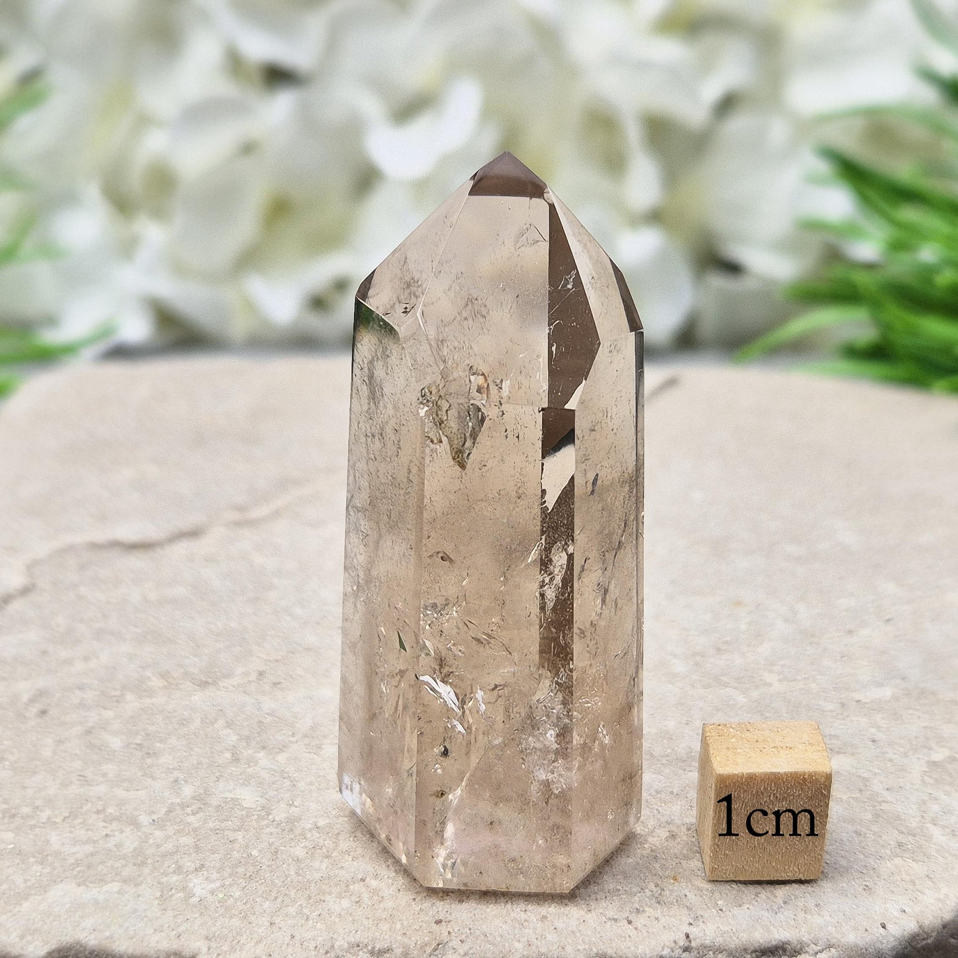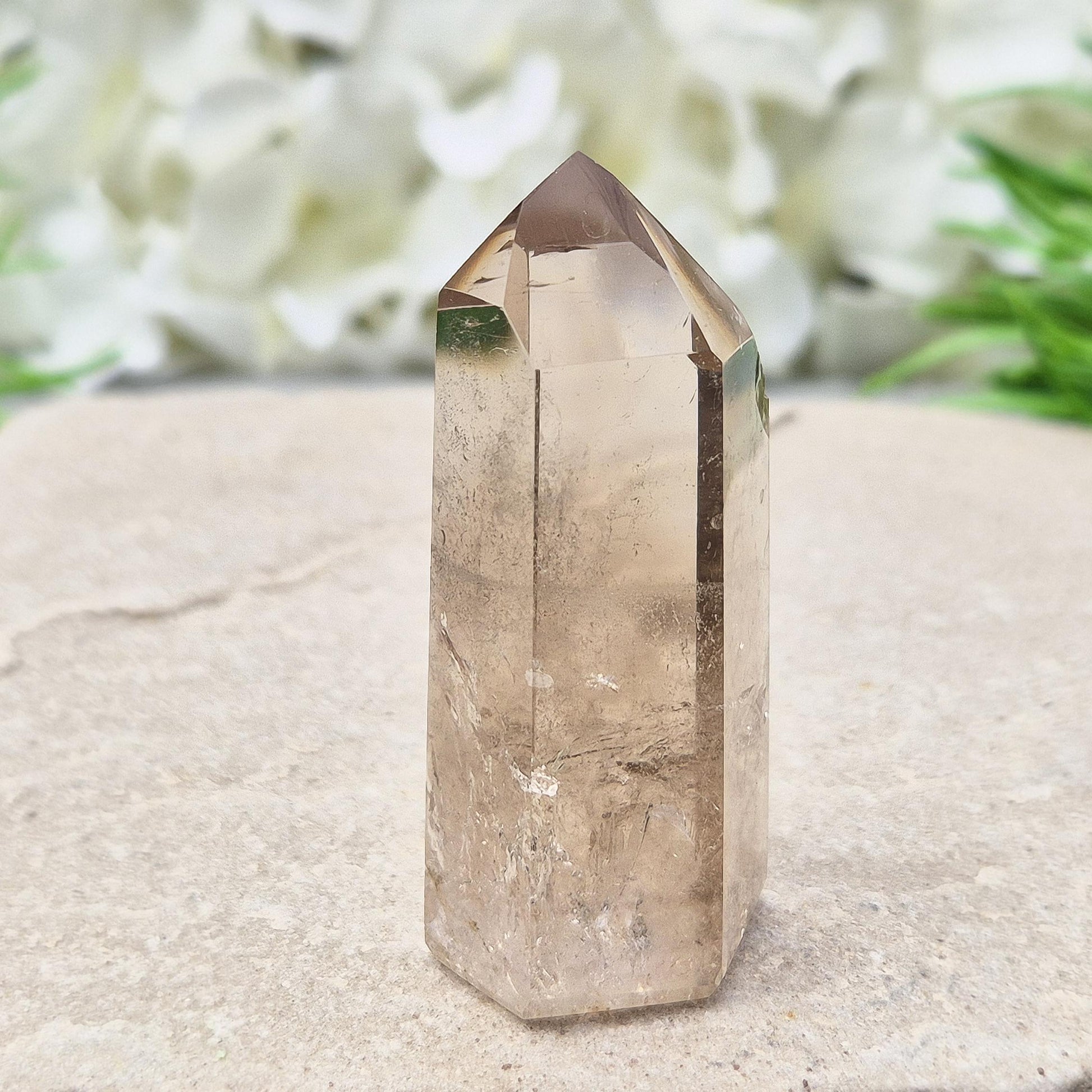 This polished Smoky Quartz point from Brazil features a light brown tone with subtle, light-reflecting inclusions. It’s not heat-treated — this is genuine, naturally formed Smoky Quartz. Its energy is calm, steady, and quietly protective, perfect for times when you need to let go, ground yourself, or lighten your emotional load.