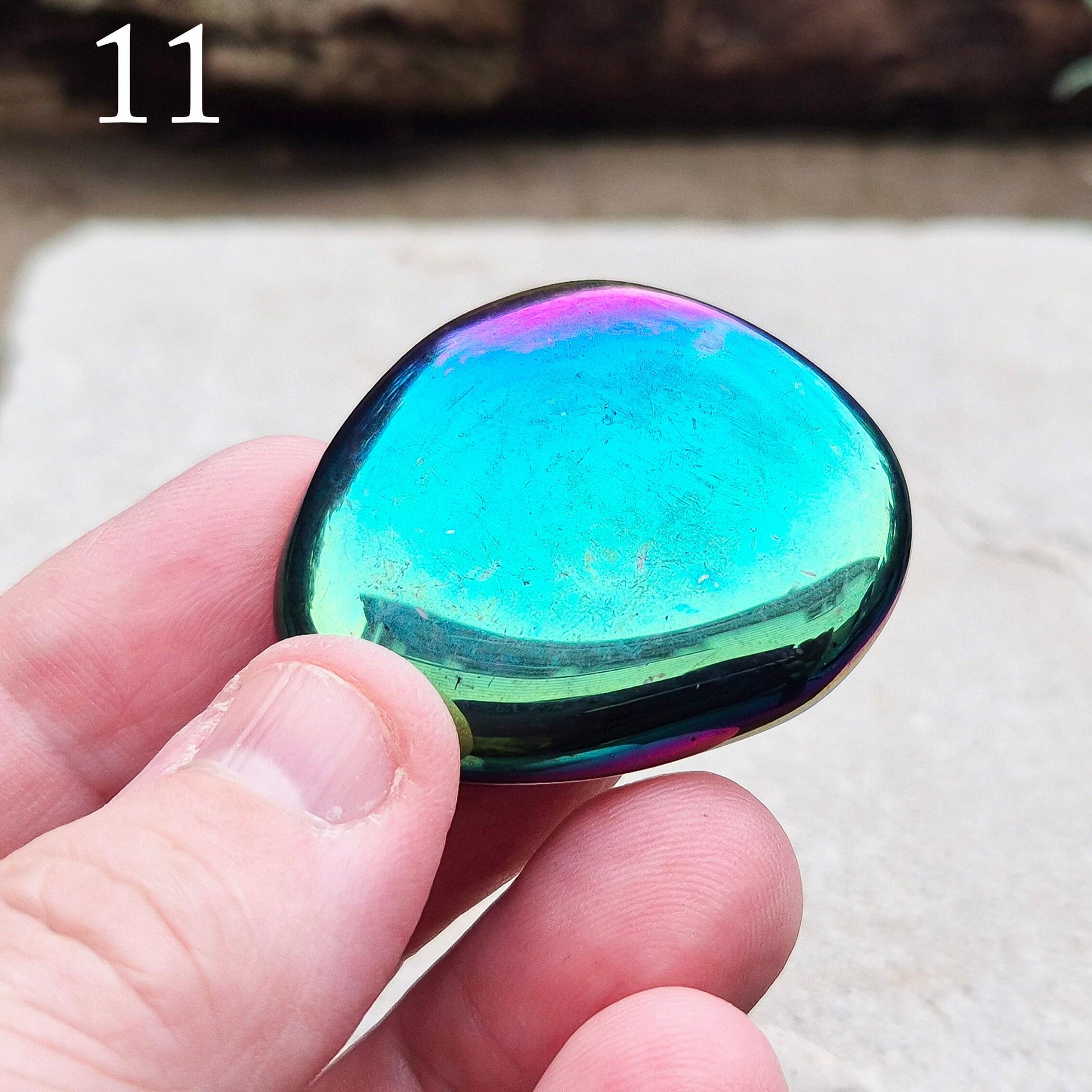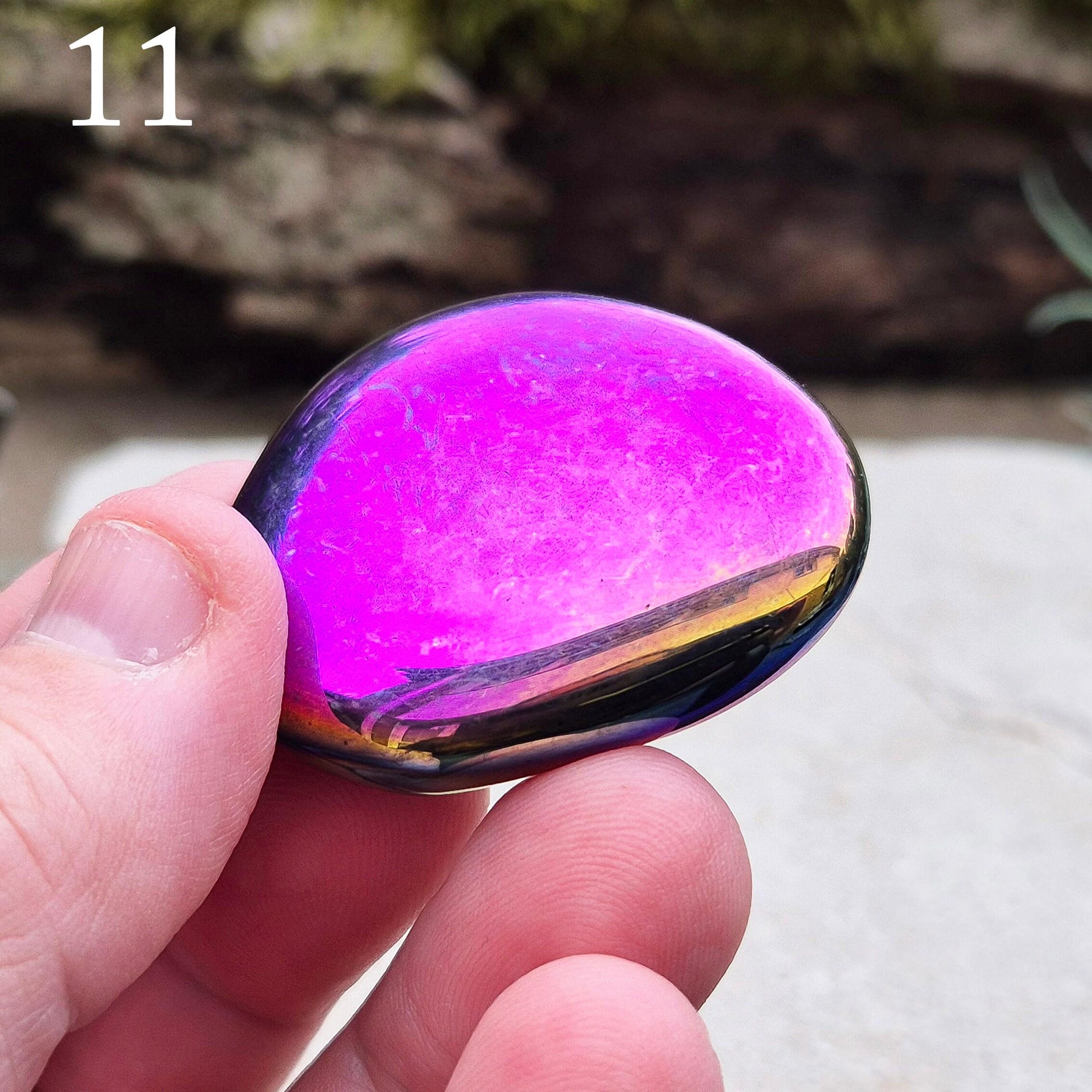 Titanium Aura Obsidian Palm Stone, Rainbow Aura Crystal | Spiritual Gemstone
