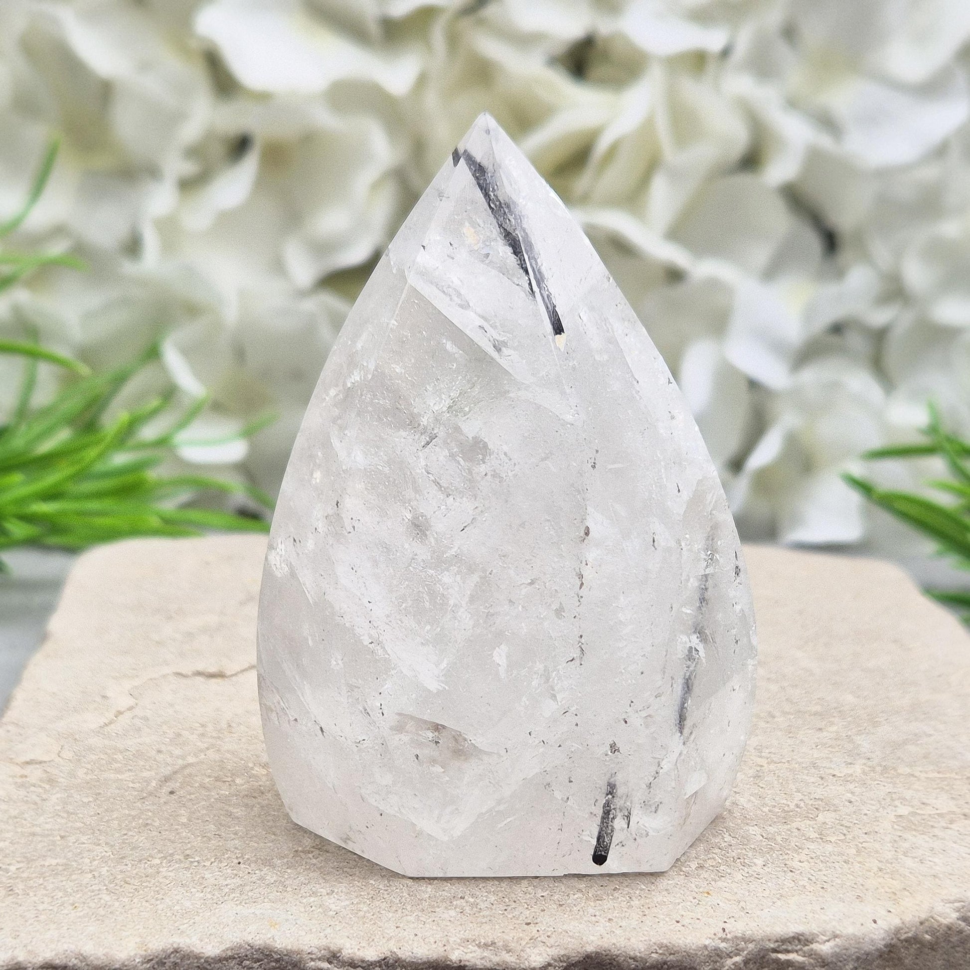 Tourmalinated Quartz Crystal Flame | Display Piece | Energy Work | Feng Shui | Grounding & Protection | Spiritual Gemstone