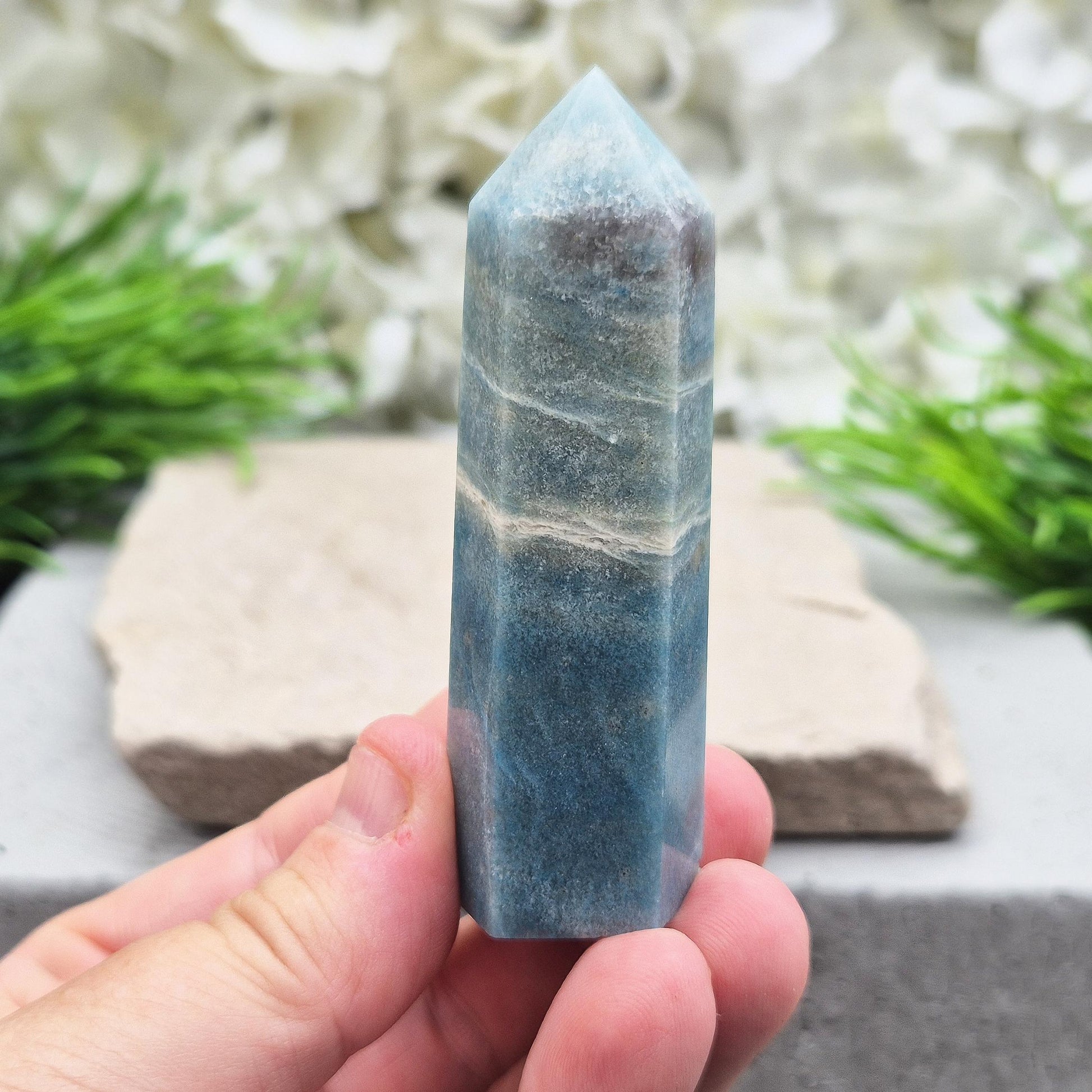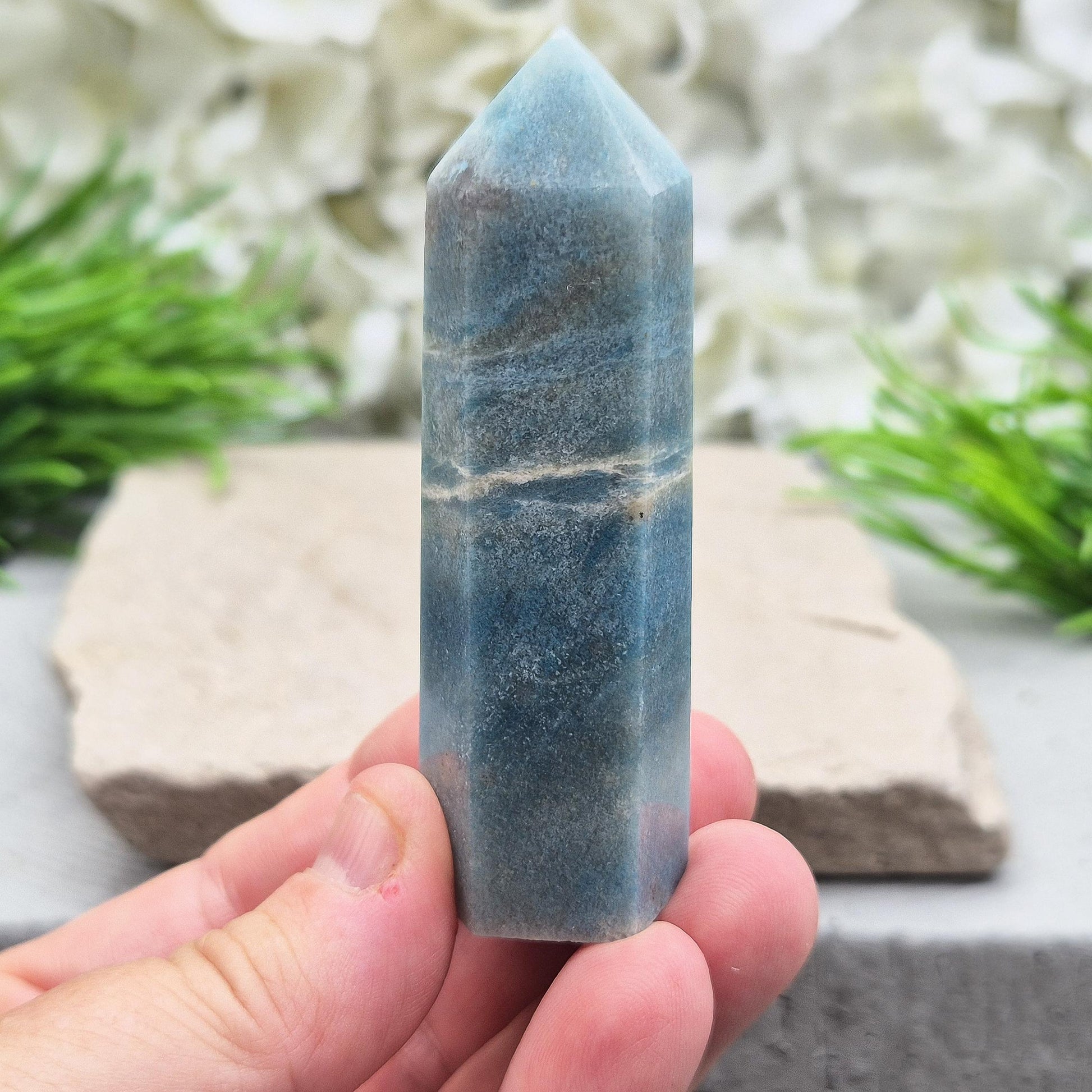 This beautiful Trolleite Point/Tower comes from Brazil, showcasing its calming bluish-gray hues. Perfectly balanced for energy work, this point is designed to direct and amplify energy upright and outward.