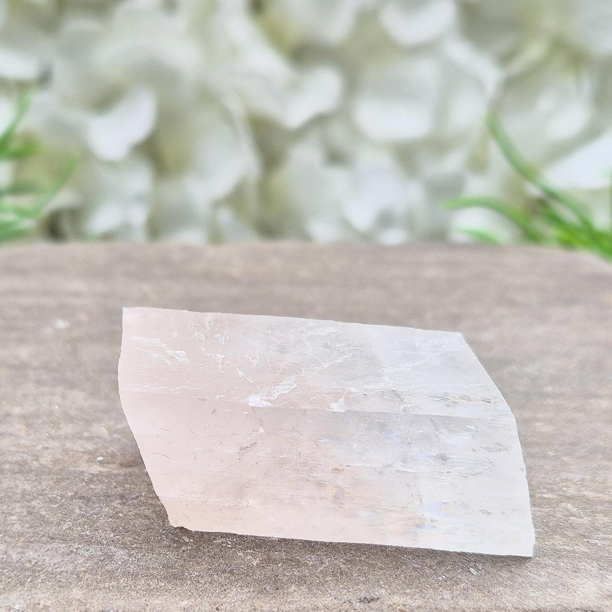 Watermelon Calcite from Mexico — Gentle Pink Energy Stone. This pale pink watermelon calcite comes from Mexico, showing soothing hues of pink with no noticeable green. Unlike the typical watermelon calcite with its pink-and-green bands, this variety is more subtle and delicate in colour, offering a calm, gentle, nurturing energy ideal for those needing emotional kindness. Has a rainbow within this piece.
