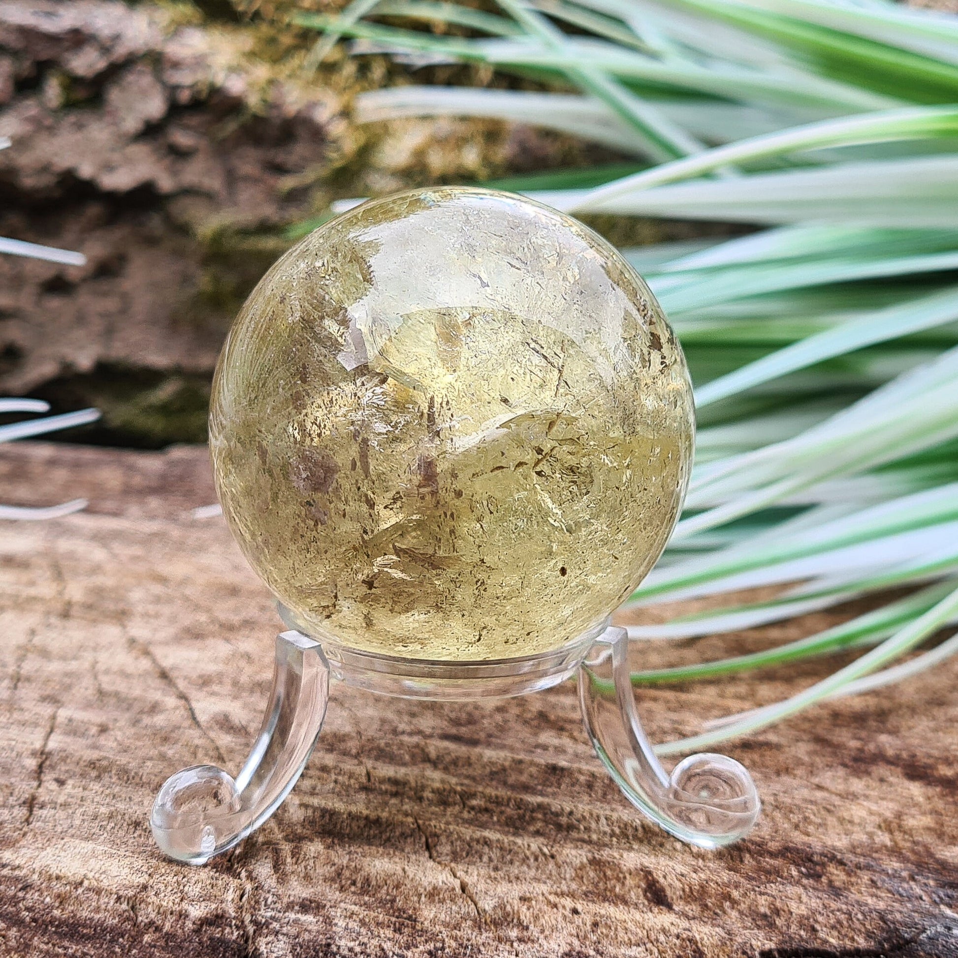 Natural Yellow Quartz Sphere (Iron-Included) – Citrine-Like Quartz with Clear acrylic stand included
