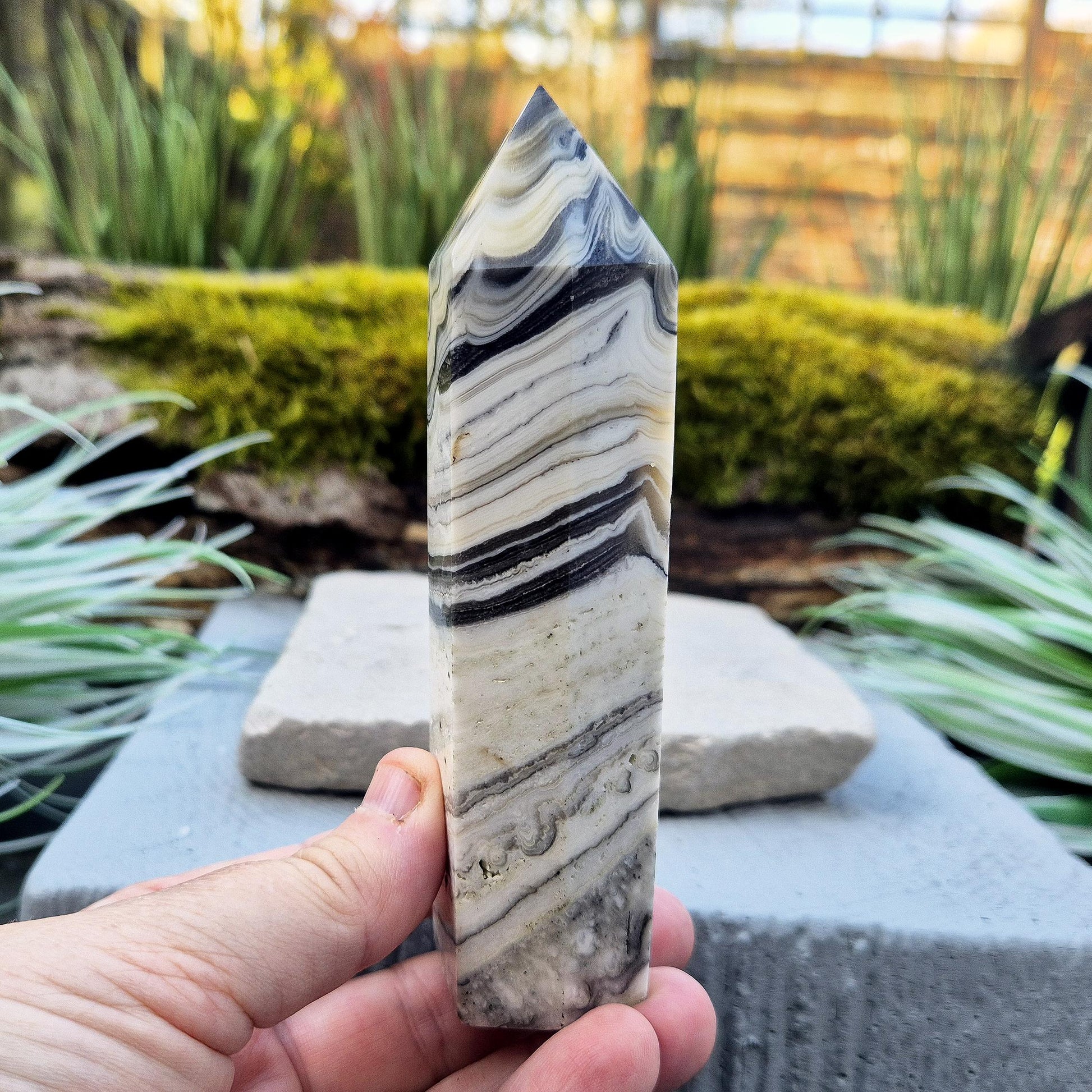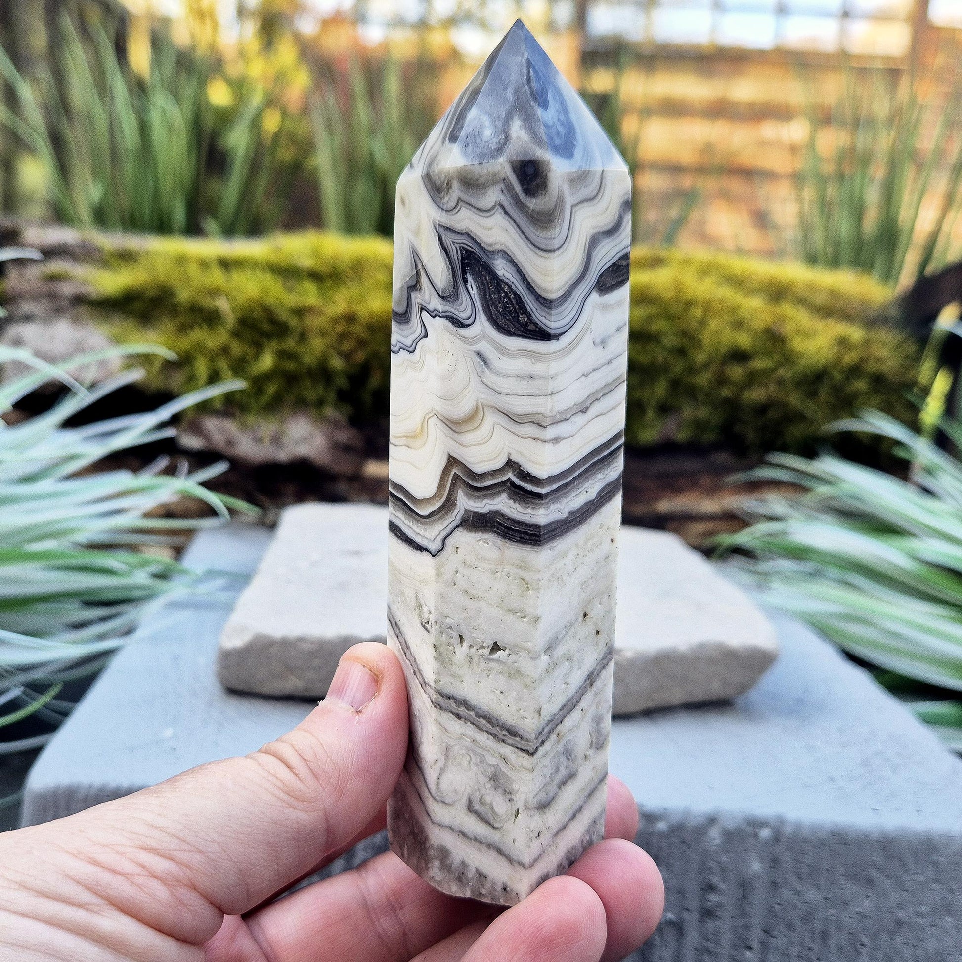Zebra Calcite Crystal Point | Grounding Energy | Meditation Aid & Crystal